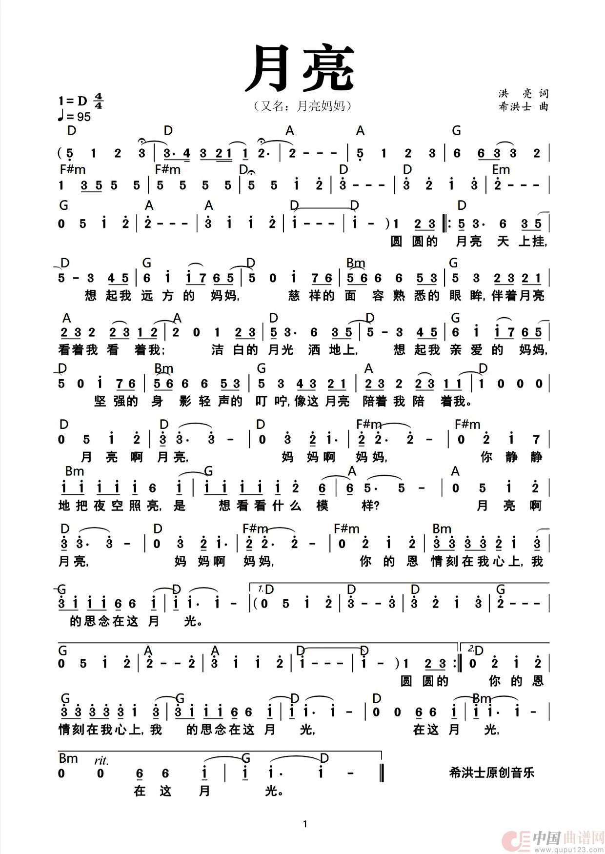 《月亮》又名“月亮妈妈“,一首很抒情的思念之歌,借月亮表达对离去亲人的思念。