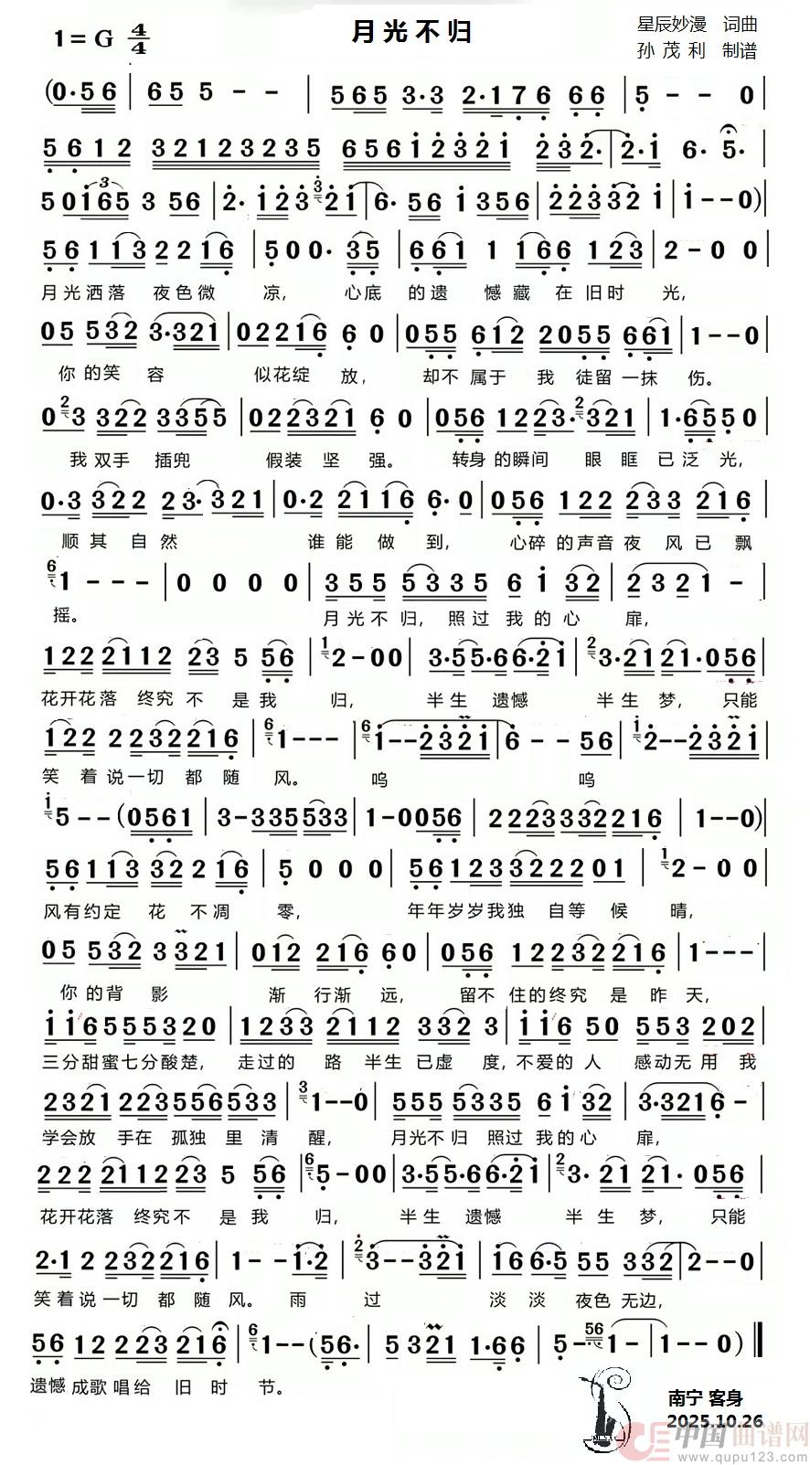 作词:星辰妙漫 作曲:星辰妙漫 演唱(奏):星辰妙漫 来源:谱友孙茂利上传 上传:孙茂利