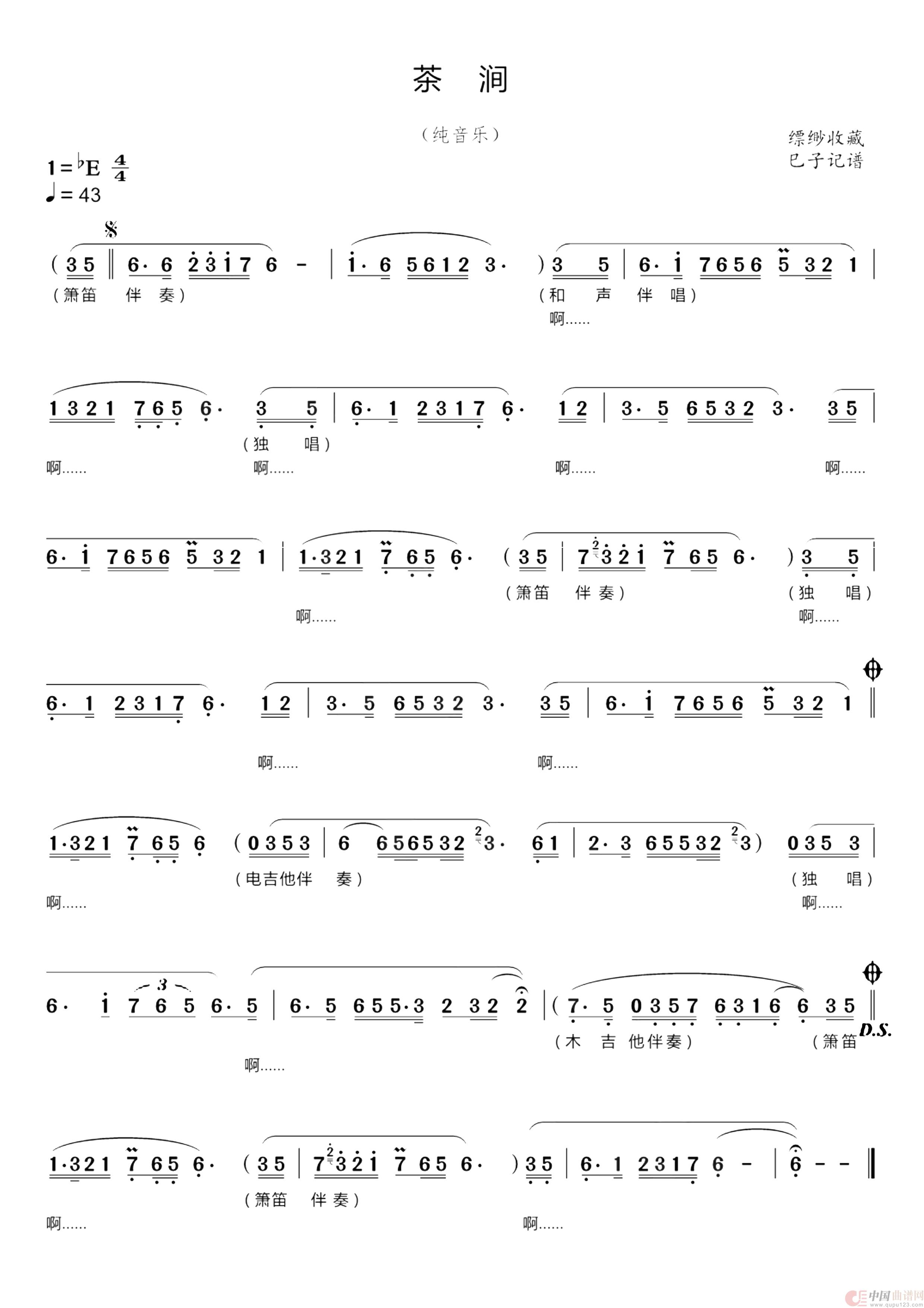 《茶涧》(纯音乐),曲作者不详,演唱者:缥缈收藏,制谱:巳子(公益分享)