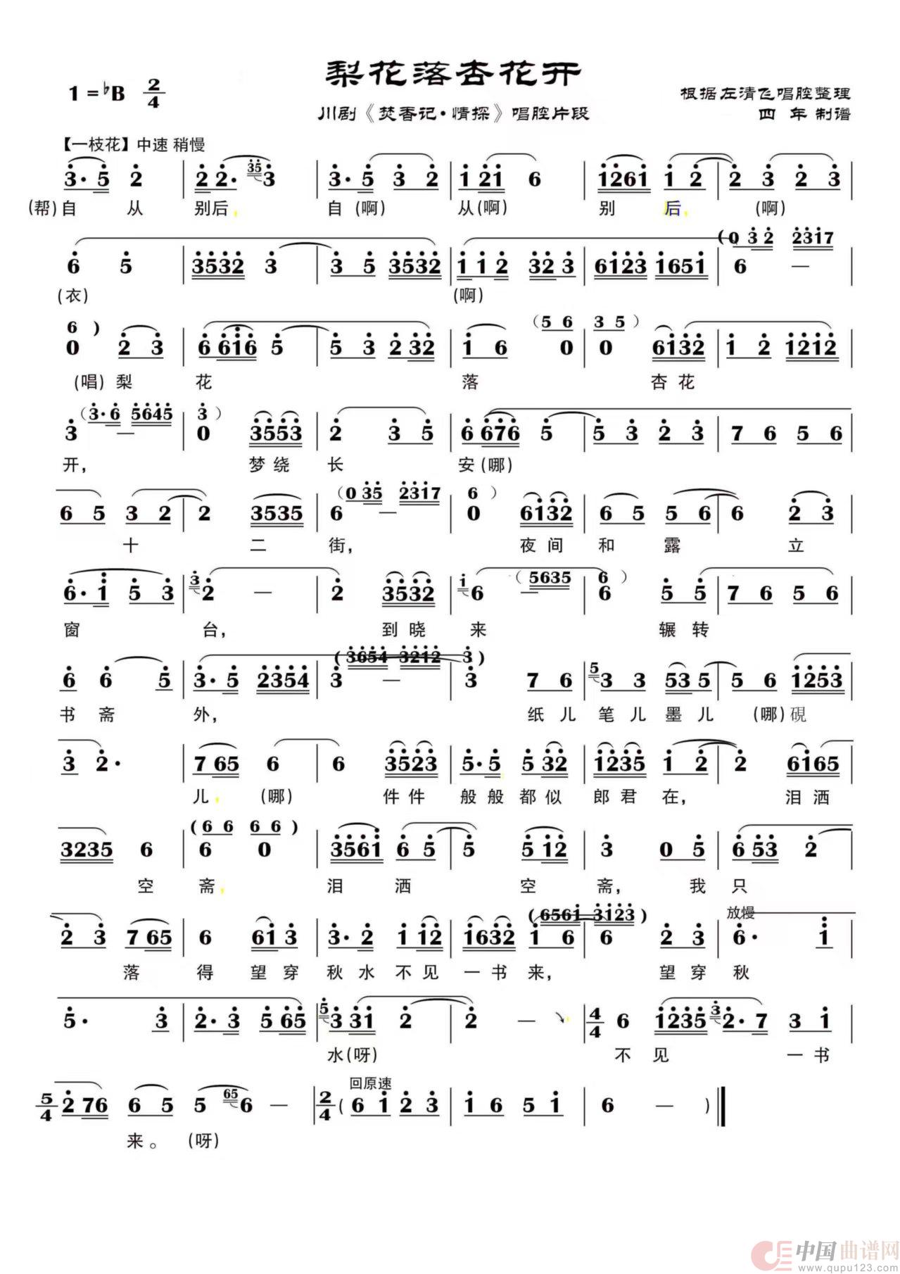关于《梨花落杏花开》曲谱的评论