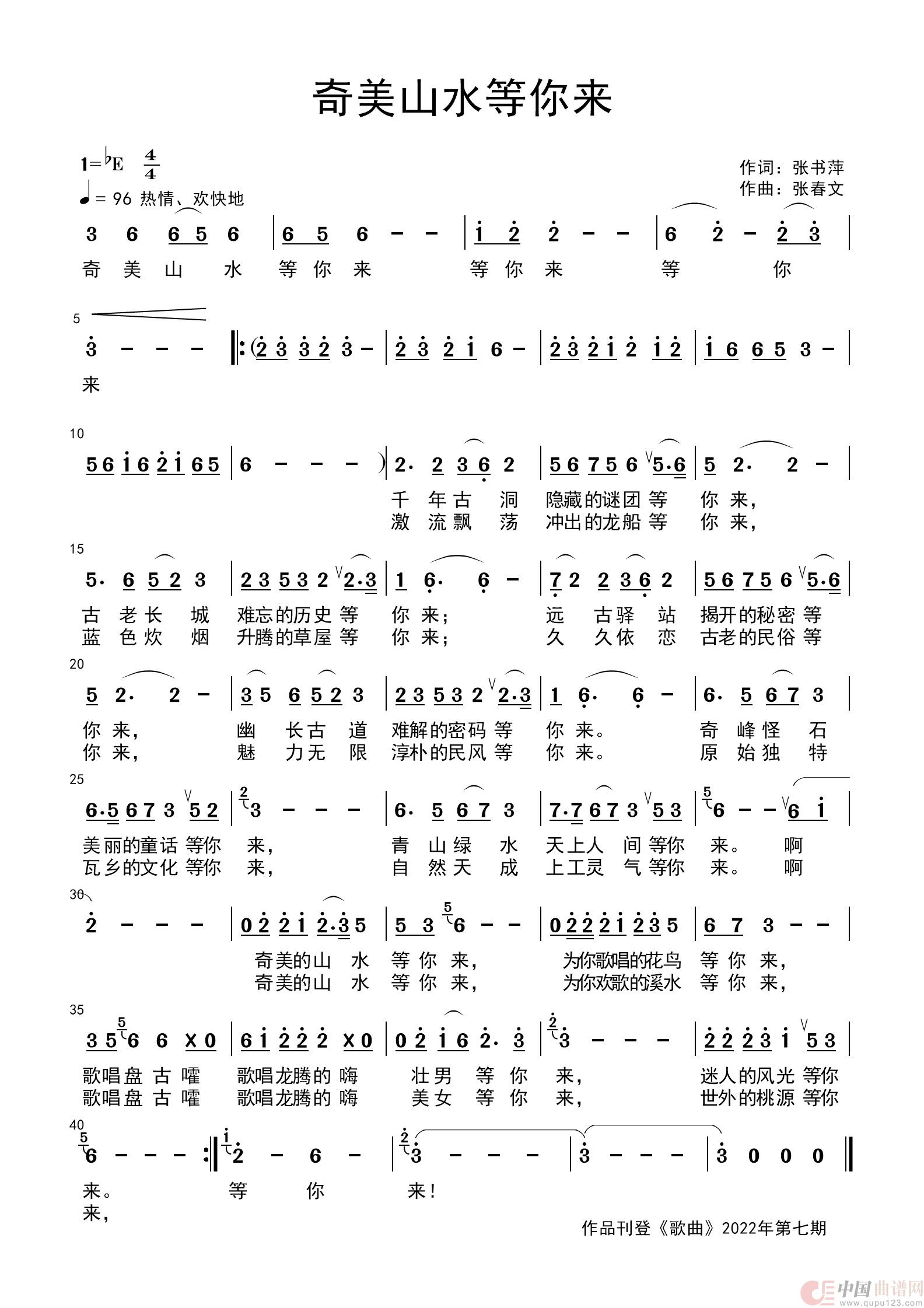 提示:在曲谱图片上单击右键,选择"图片另存为..."即可将曲谱保存到您的电脑中,打印时候可将图片插入到WORD中,调整合适大小打印即可。