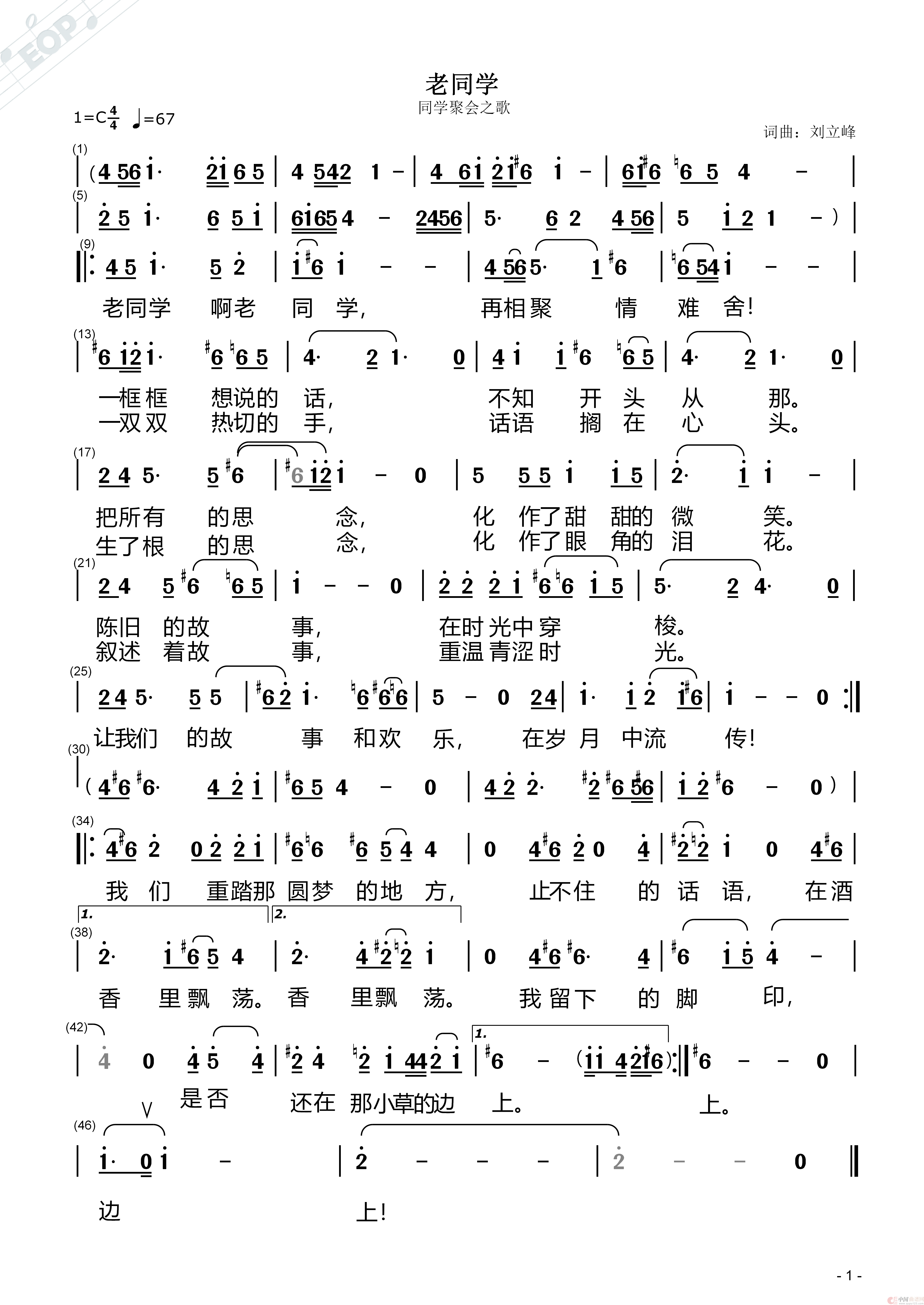 关于《老同学》曲谱的评论