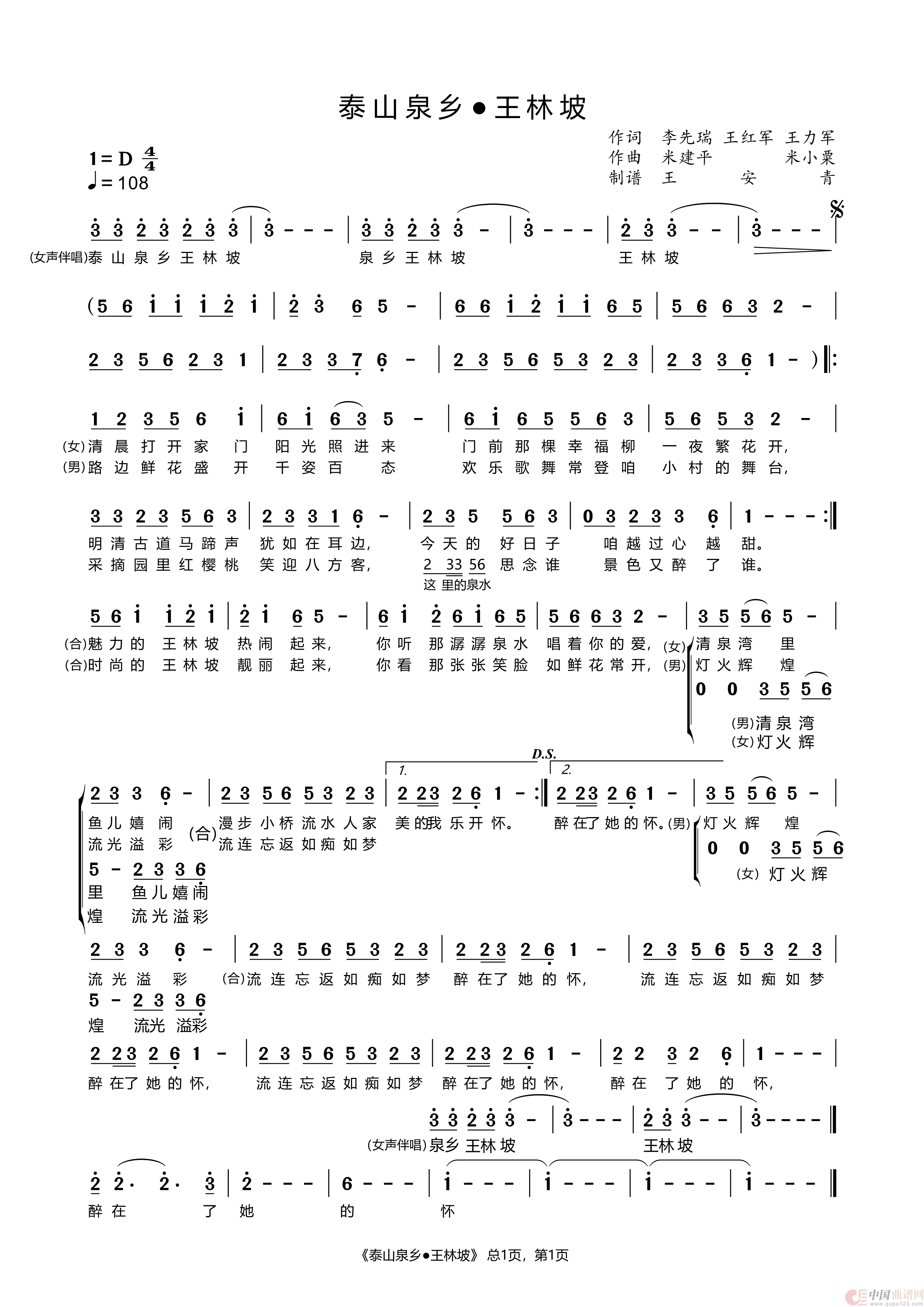 关于《泰山泉乡 王林坡》曲谱的评论