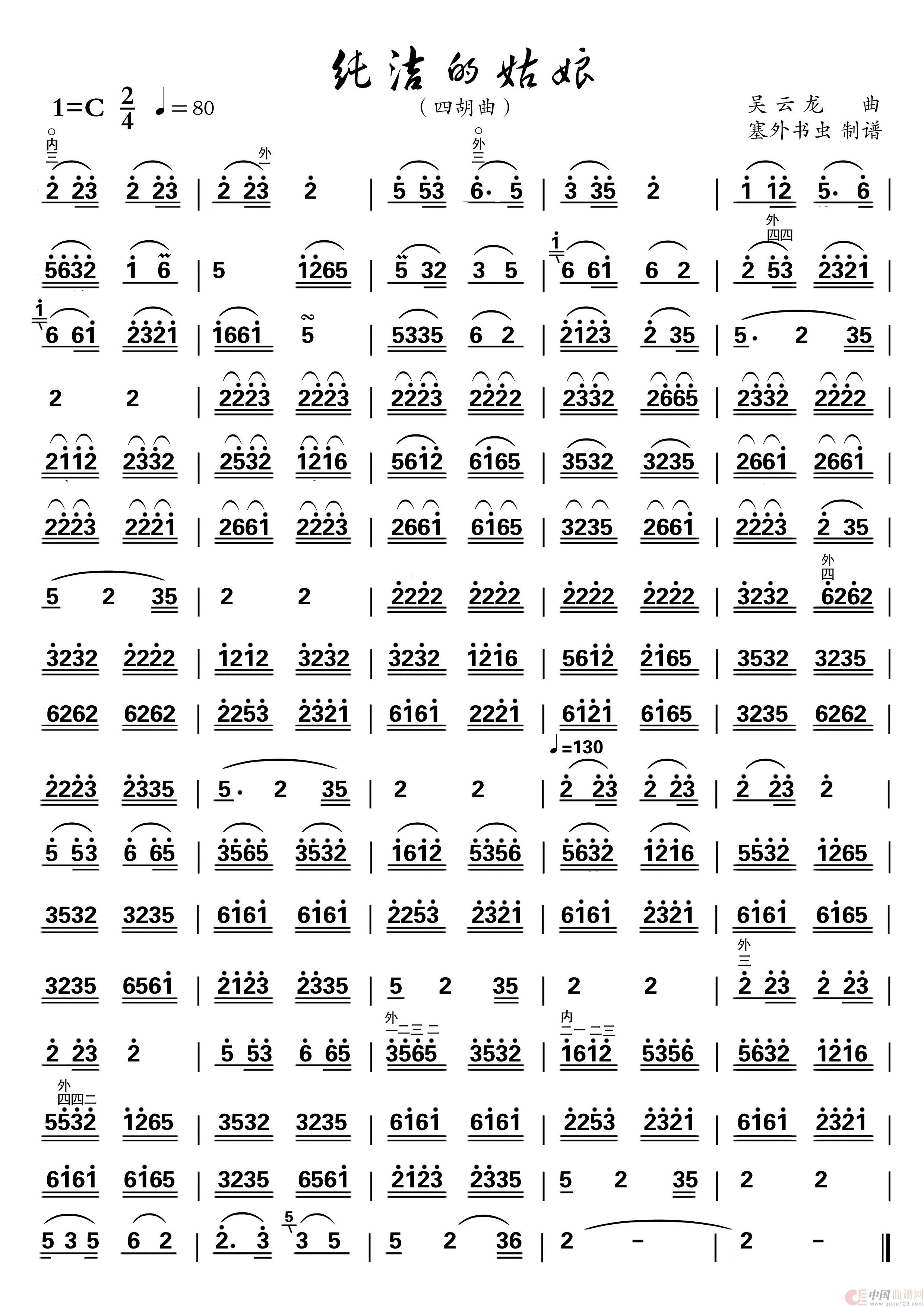 纯洁的姑娘(四胡曲谱)