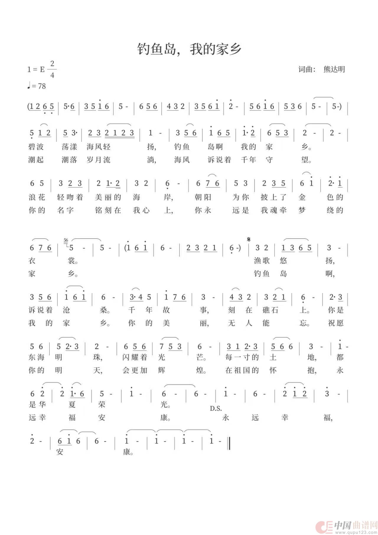 关于《钓鱼岛,我的家乡》曲谱的评论