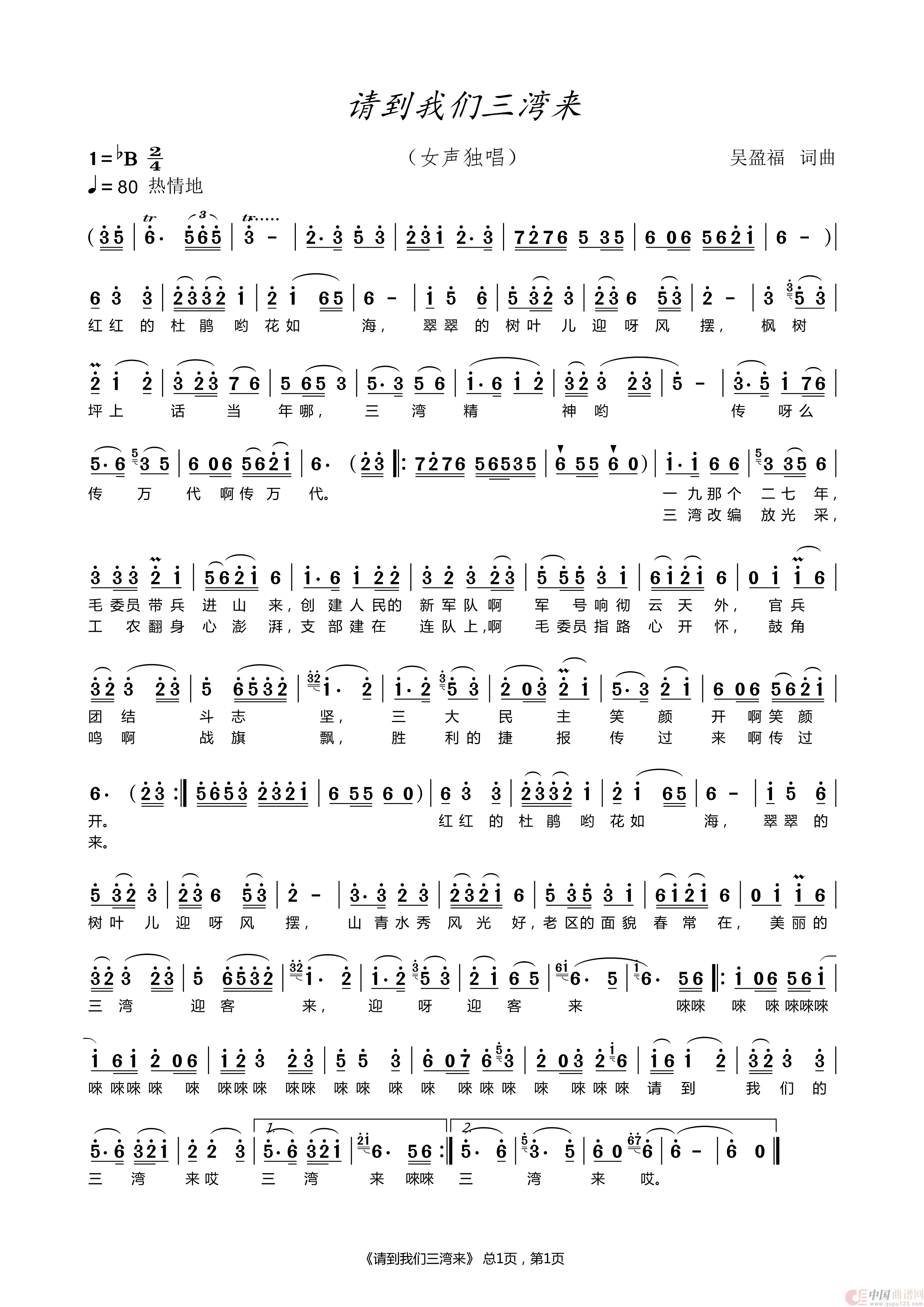 提示:在曲谱图片上单击右键,选择“图片另存为...”即可将曲谱保存到您的电脑中,打印时候可将图片插入到WORD中,调整合适大小打印即可。