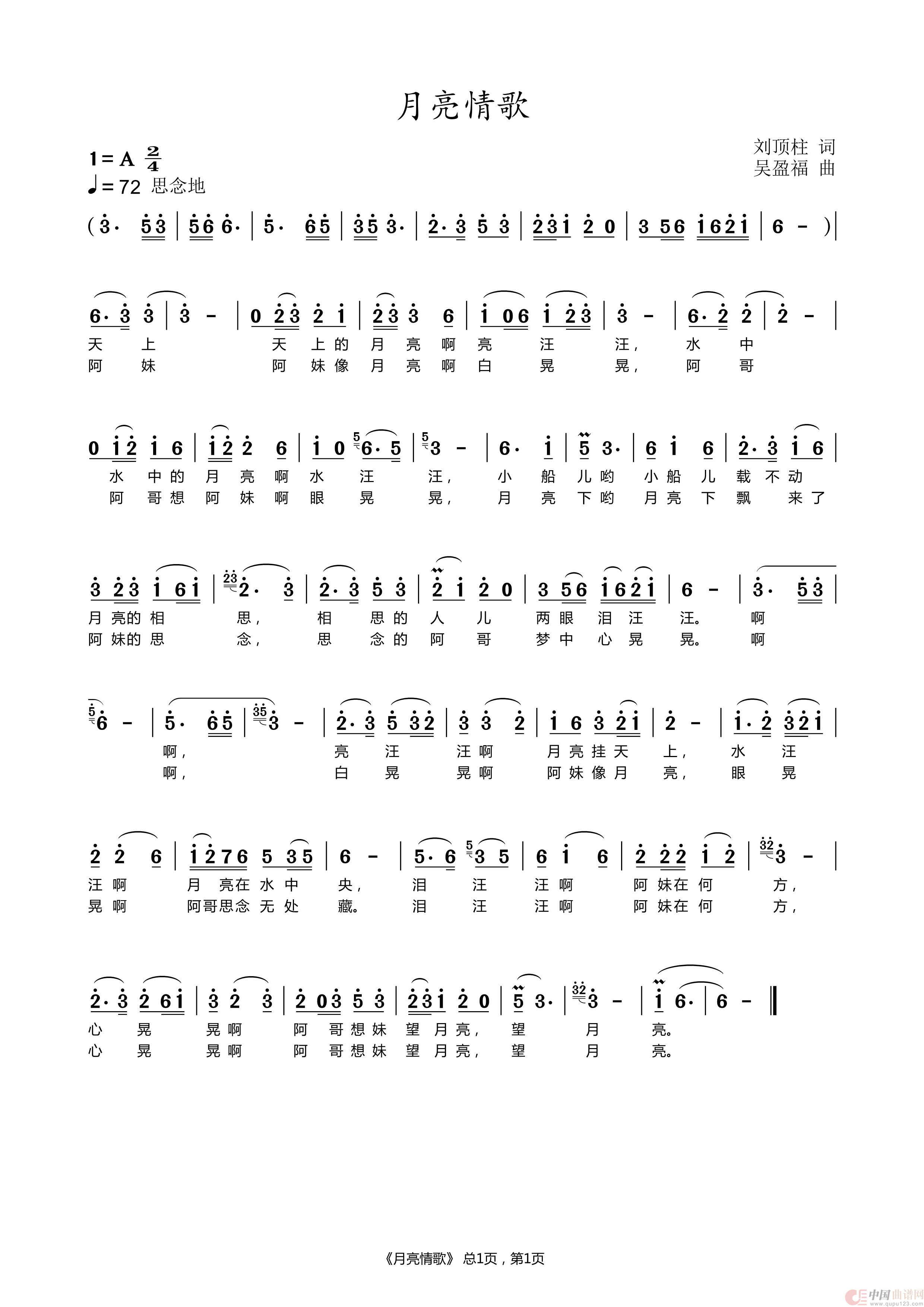 关于《月亮情歌》曲谱的评论