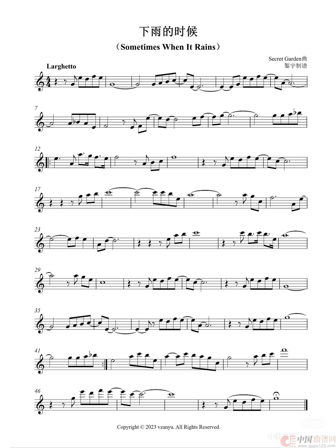 关于《下雨的时候》曲谱的评论