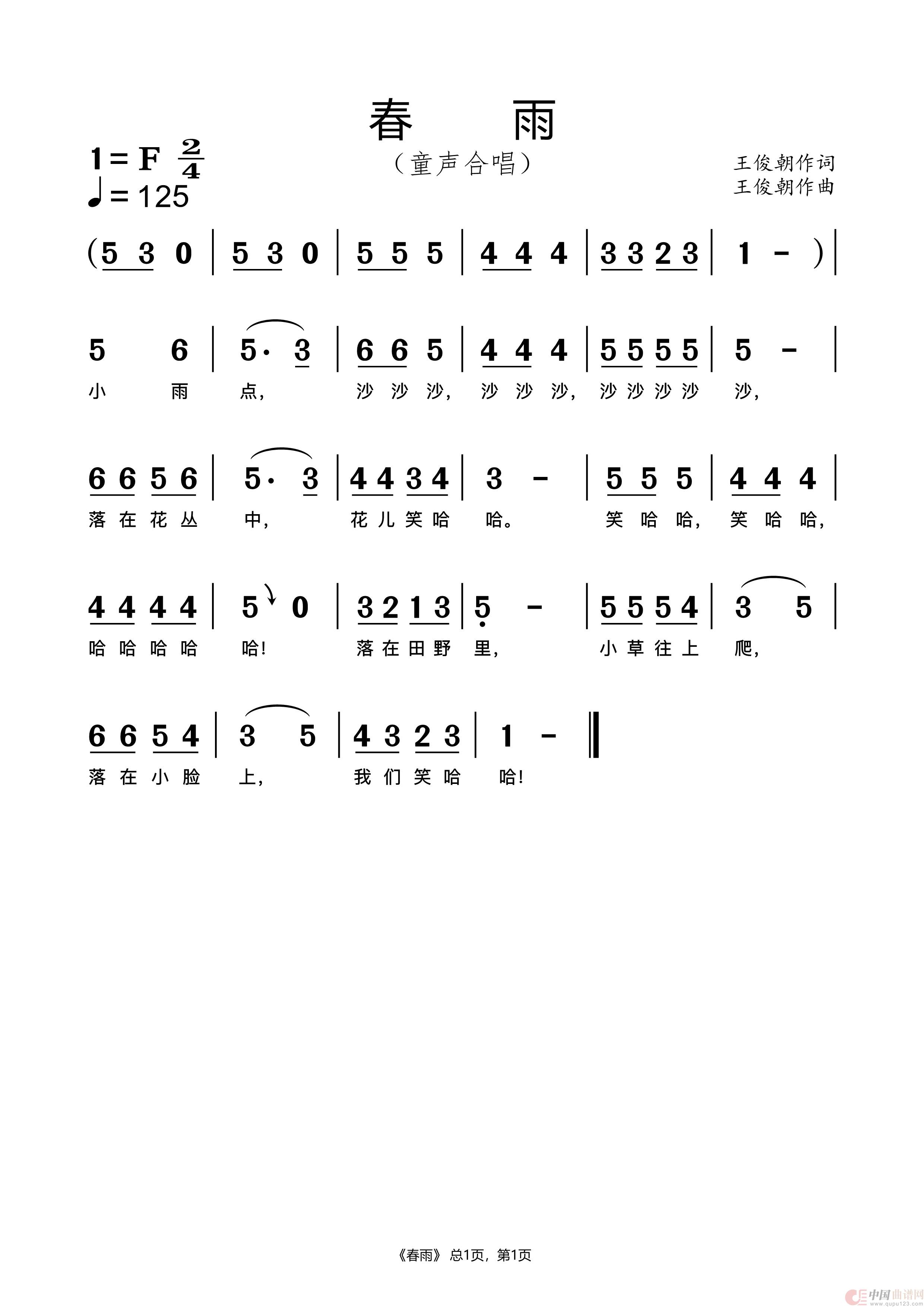 作词:王俊朝 作曲:王俊朝 来源:谱友中国ypwjc上传 上传:中国ypwjc
