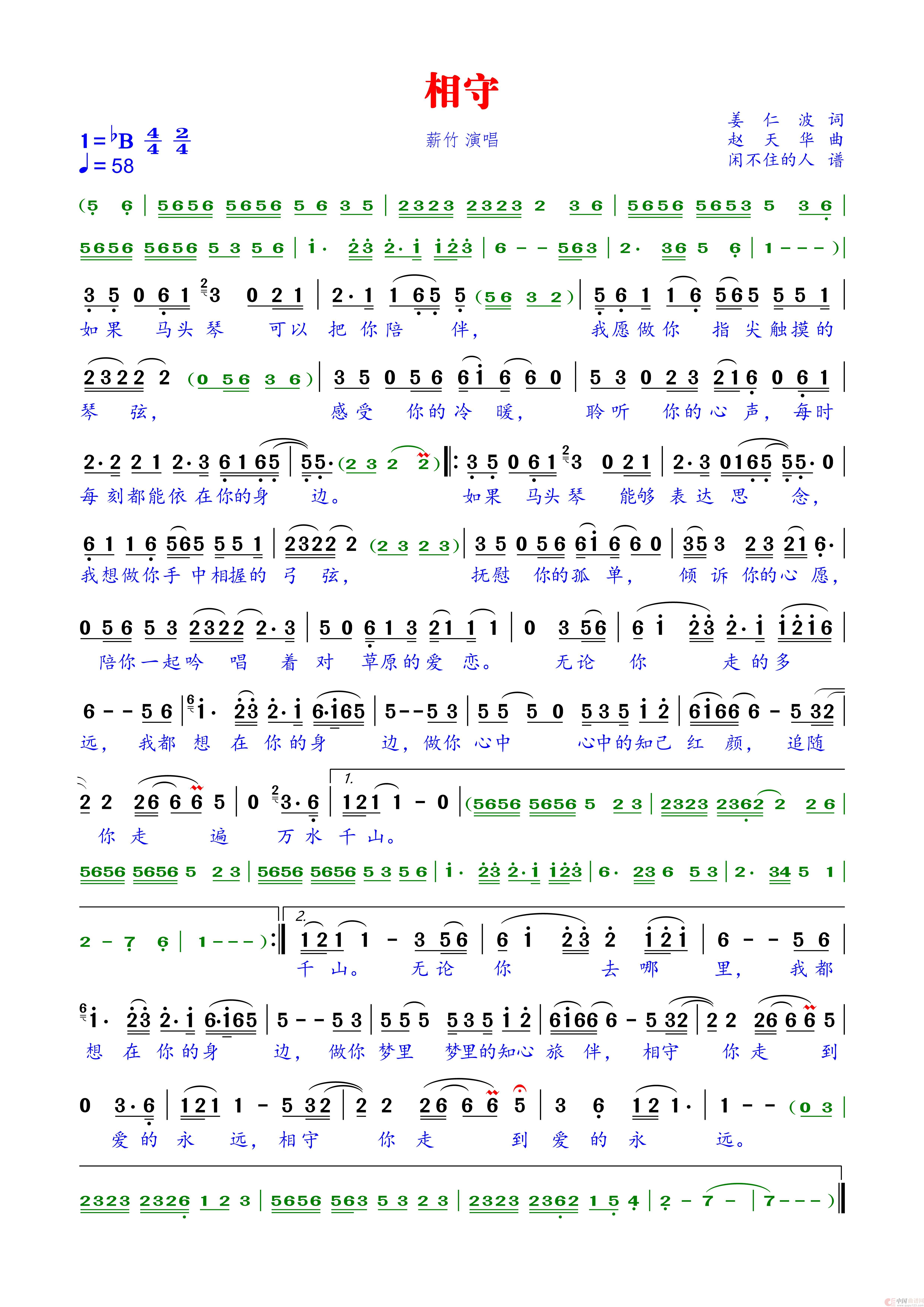 提示:在曲谱图片上单击右键,选择“图片另存为...”即可将曲谱保存到您的电脑中,打印时候可将图片插入到WORD中,调整合适大小打印即可。
