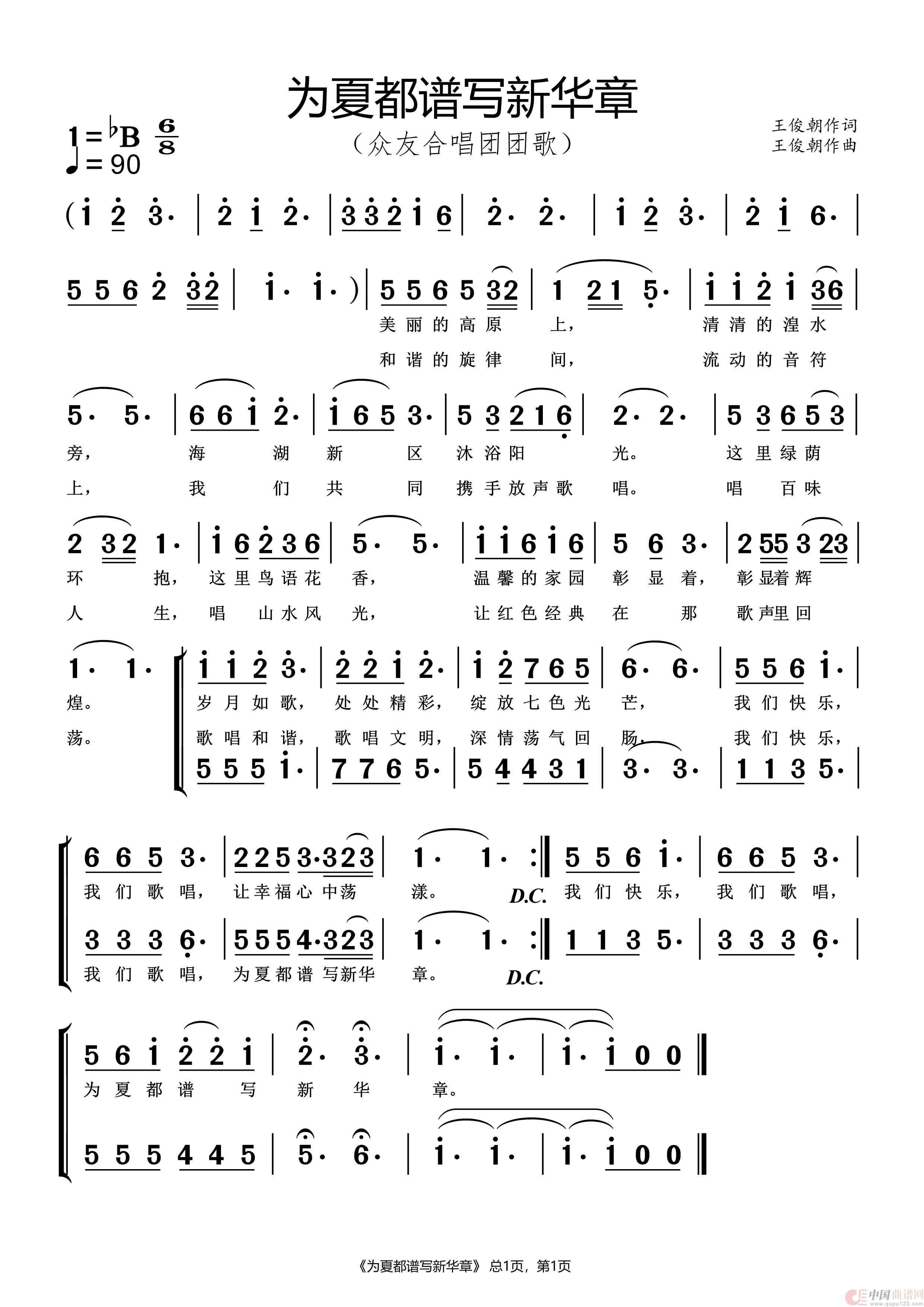 作词:王俊朝 作曲:王俊朝 来源:谱友中国ypwjc上传 上传:中国ypwjc