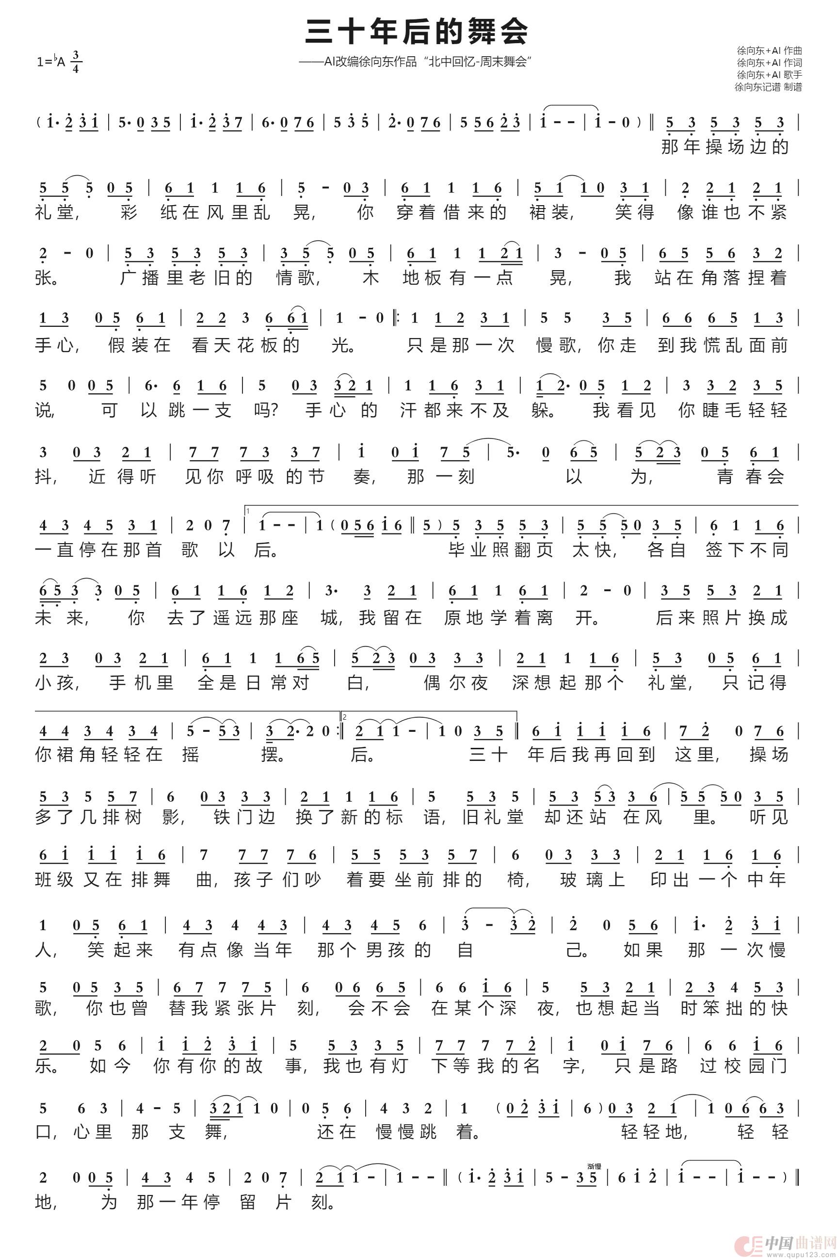 《三十年后的舞会(音控AI改编徐向东原创歌曲“北中回忆-周末舞会)》文本歌词