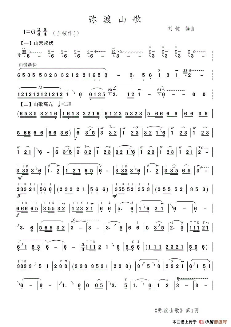 作曲:刘健编曲 格式:简谱 来源:谱友金葫芦刘健上传 上传:金葫芦刘健