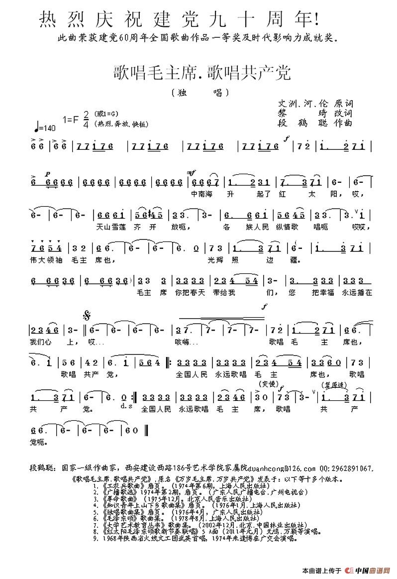 关于《歌唱毛主席 歌唱共产党》曲谱的评论