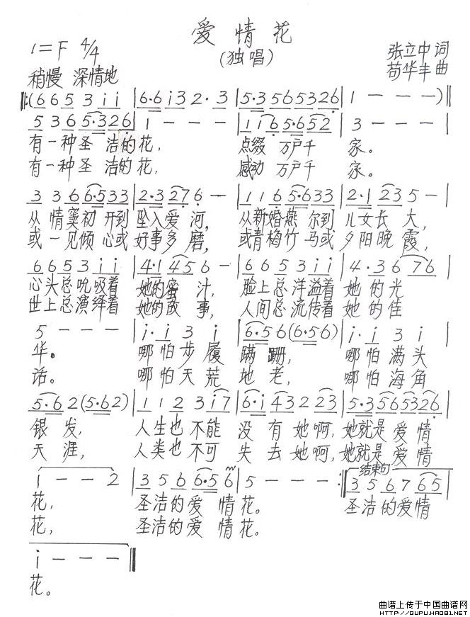 当前位置: 首页 谱友园地 手稿谱区 爱情花(张立中词 苟华丰曲)