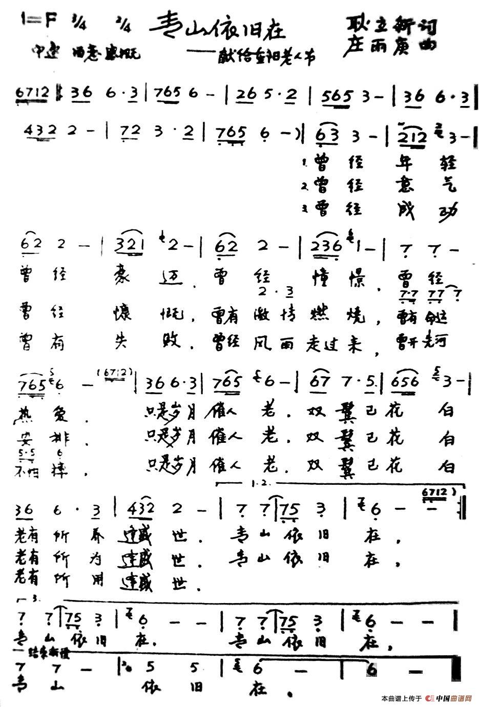 关于《青山依旧在》曲谱的评论