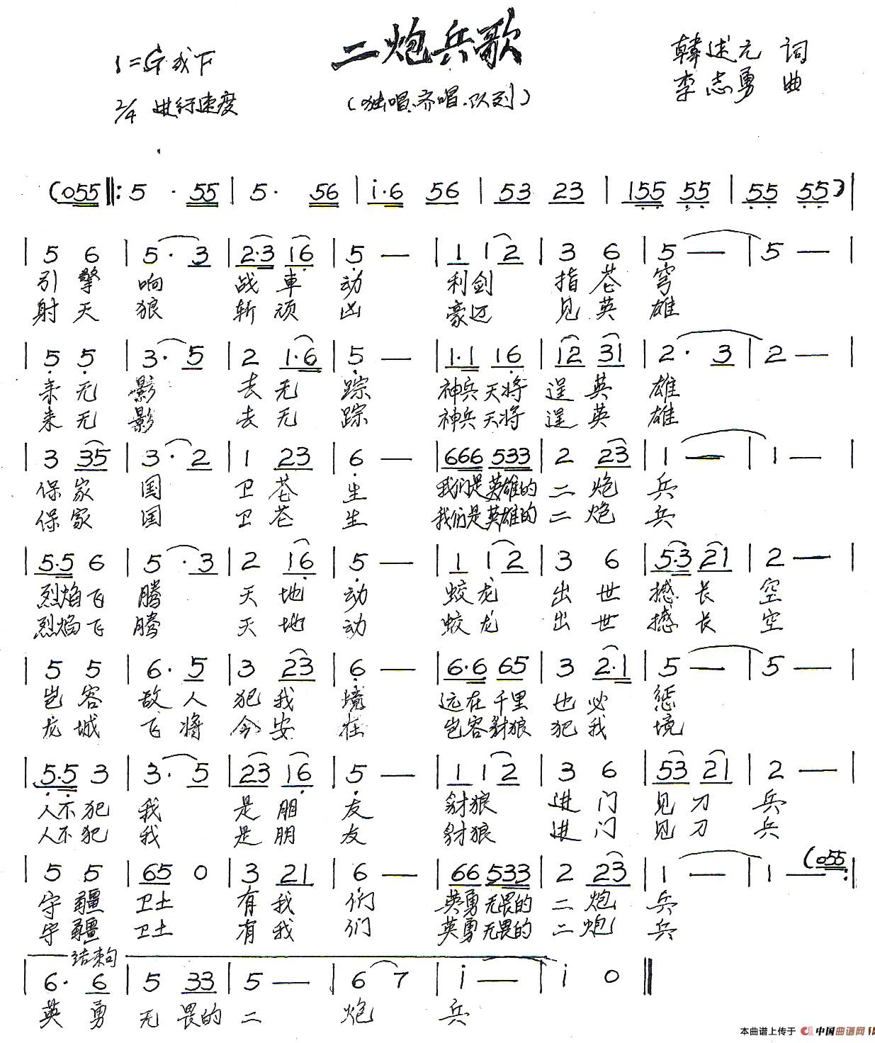 关于《二炮兵歌》曲谱的评论