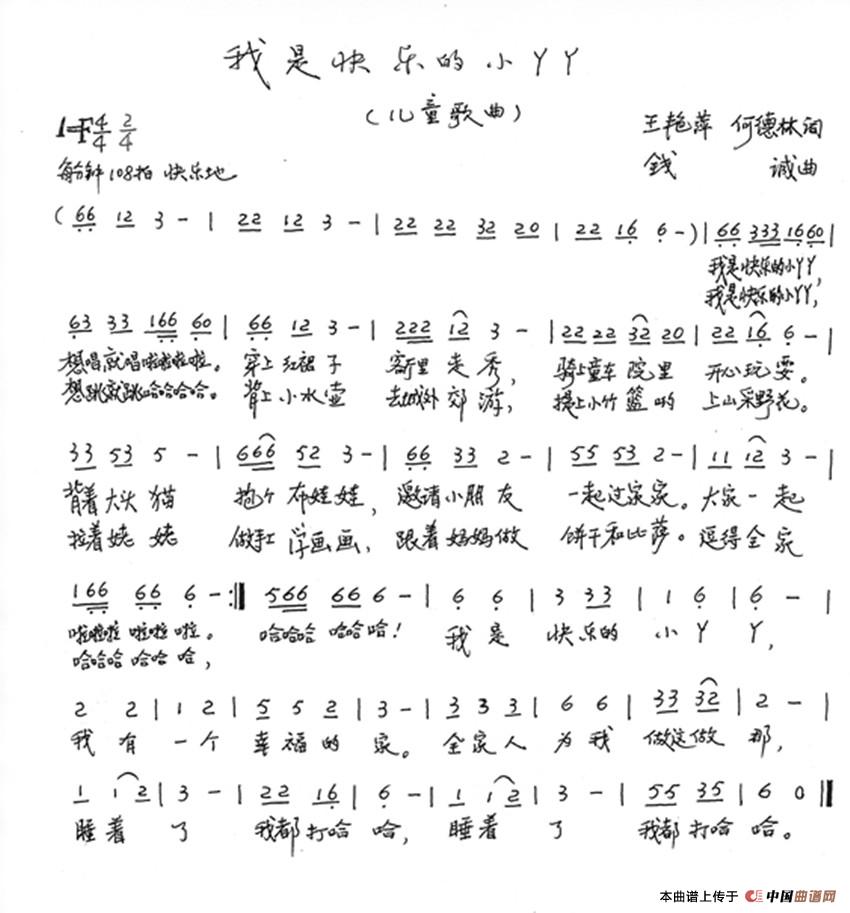 当前位置: 首页 谱友园地 手稿谱区 我是快乐的小丫丫(王艳萍 何德林词 钱诚曲、少儿歌曲)