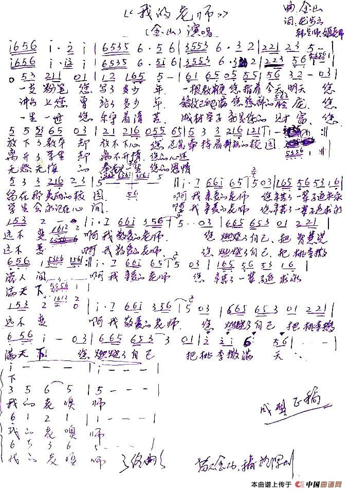 致谢:《中国曲谱网》衷心感谢作者老师馈赠原版歌谱!