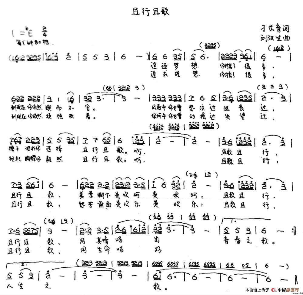 关于《且行且歌》曲谱的评论