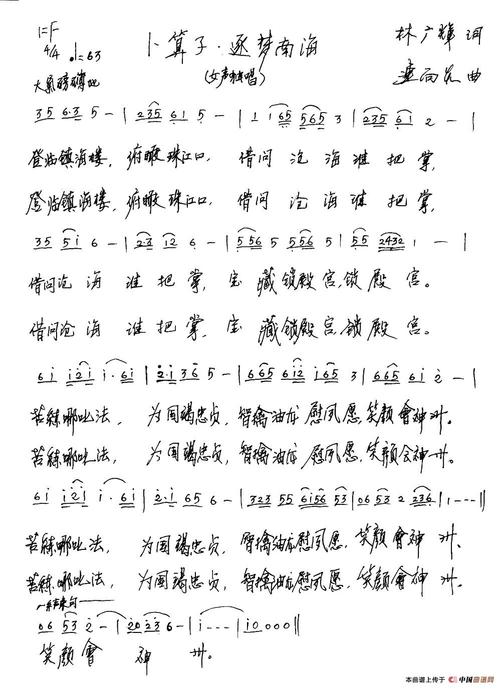 致谢:《中国曲谱网》衷心感谢作者老师馈赠原版歌谱!