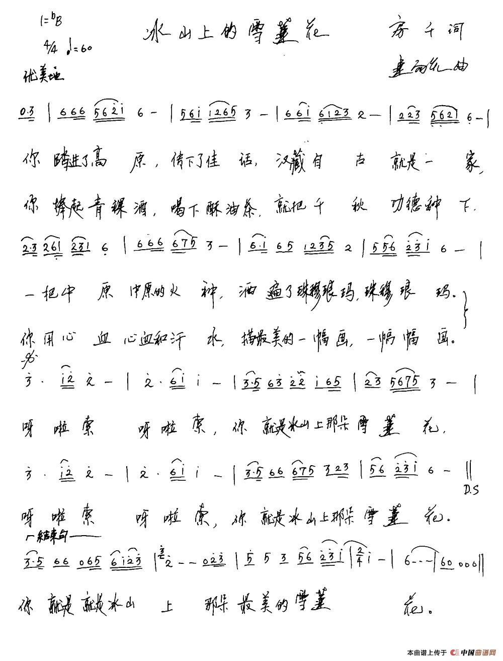 关于《冰山上的雪莲》曲谱的评论
