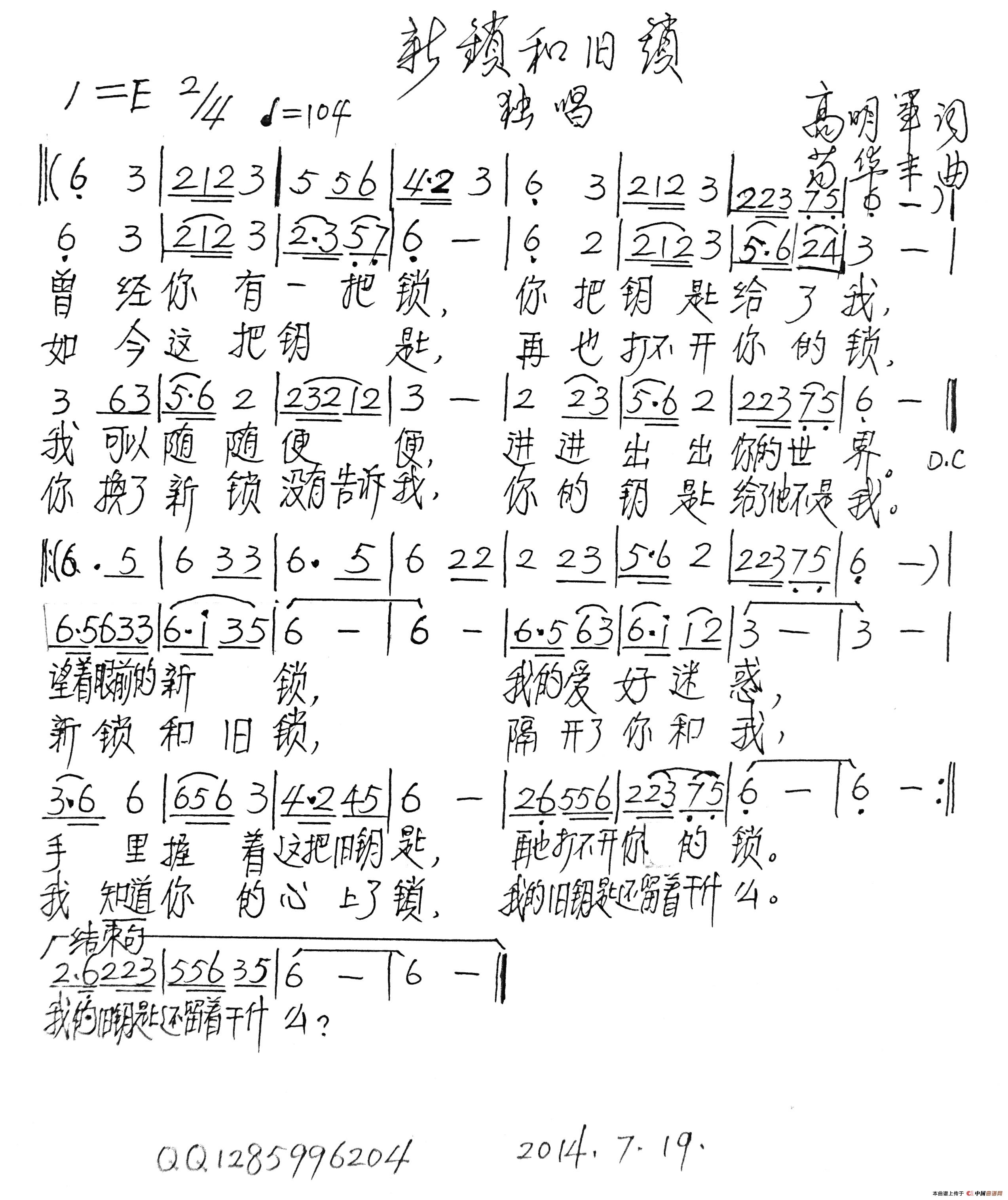 致谢:《中国曲谱网》衷心感谢作者老师馈赠原版歌谱!