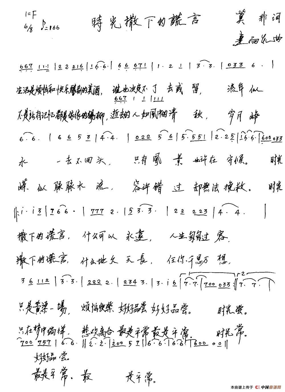 致谢:《中国曲谱网》衷心感谢作者老师馈赠原版歌谱!
