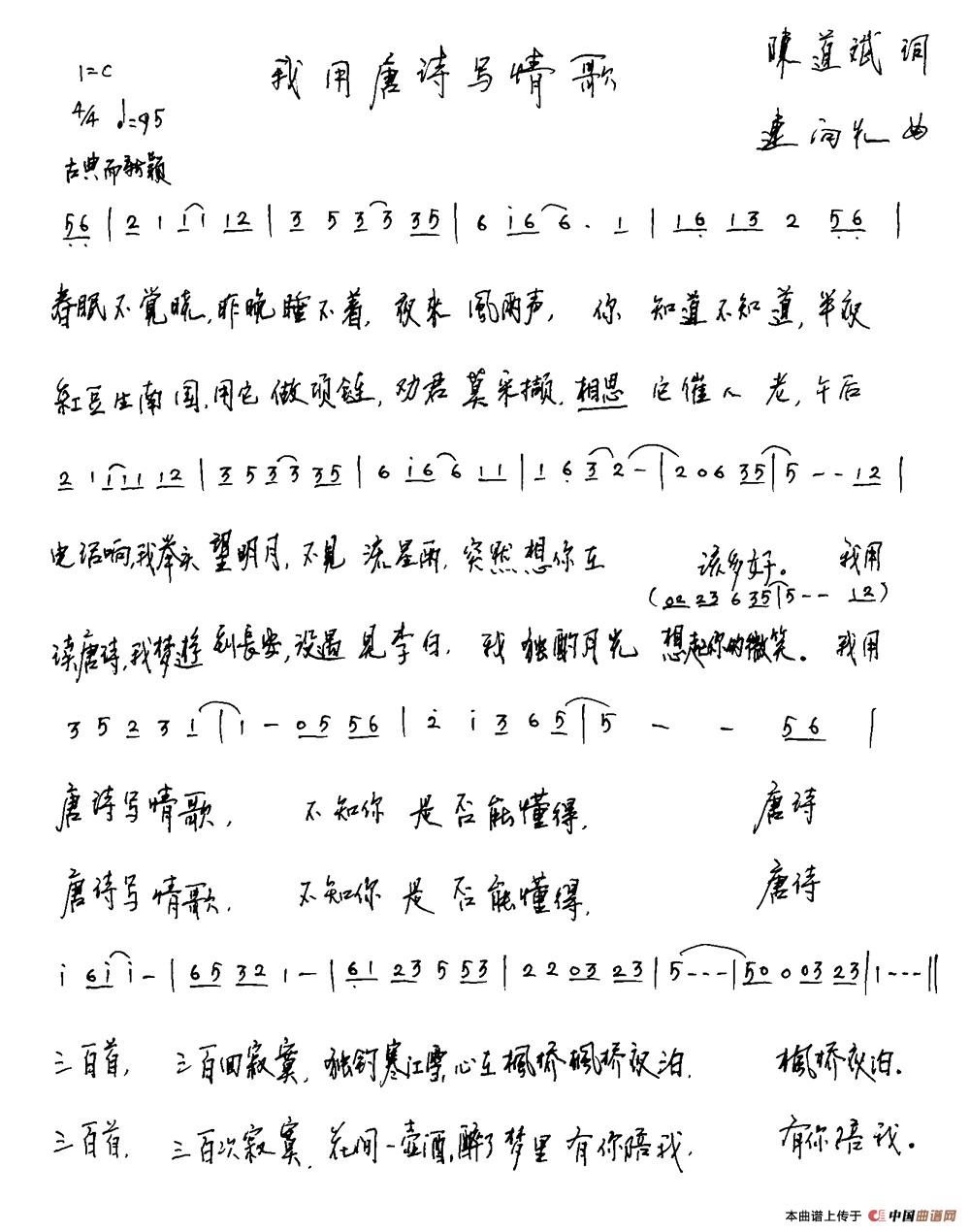 致谢:《中国曲谱网》衷心感谢作者老师馈赠原版歌谱!