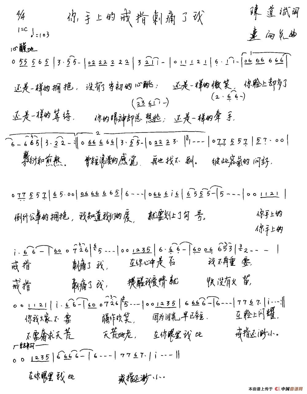 关于《你手上的戒指刺痛了我》曲谱的评论