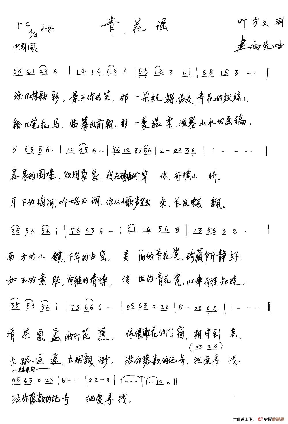 关于《青花谣》曲谱的评论