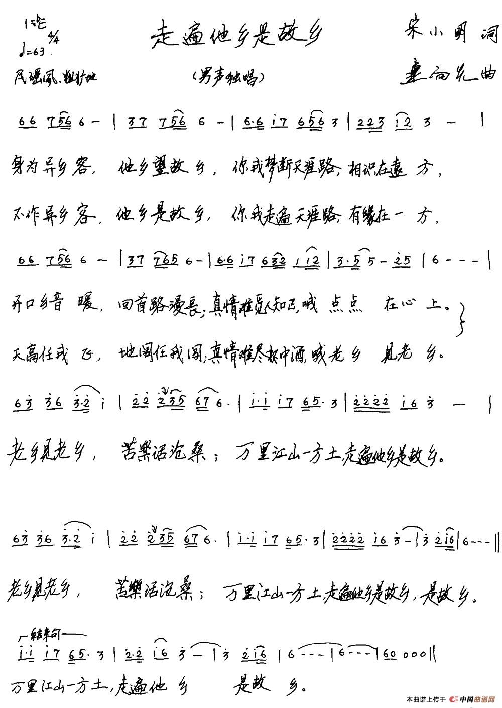 关于《走遍他乡是故乡》曲谱的评论