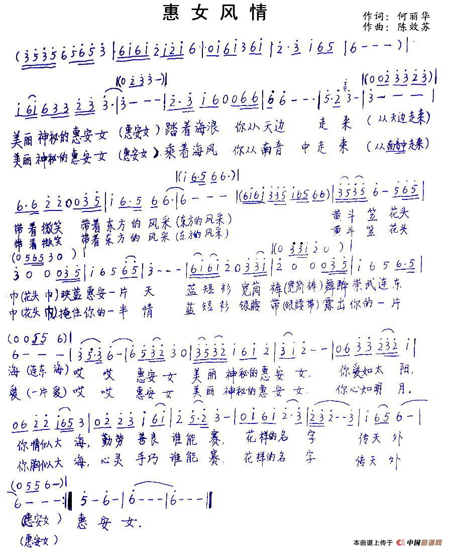 关于《惠女风情》曲谱的评论