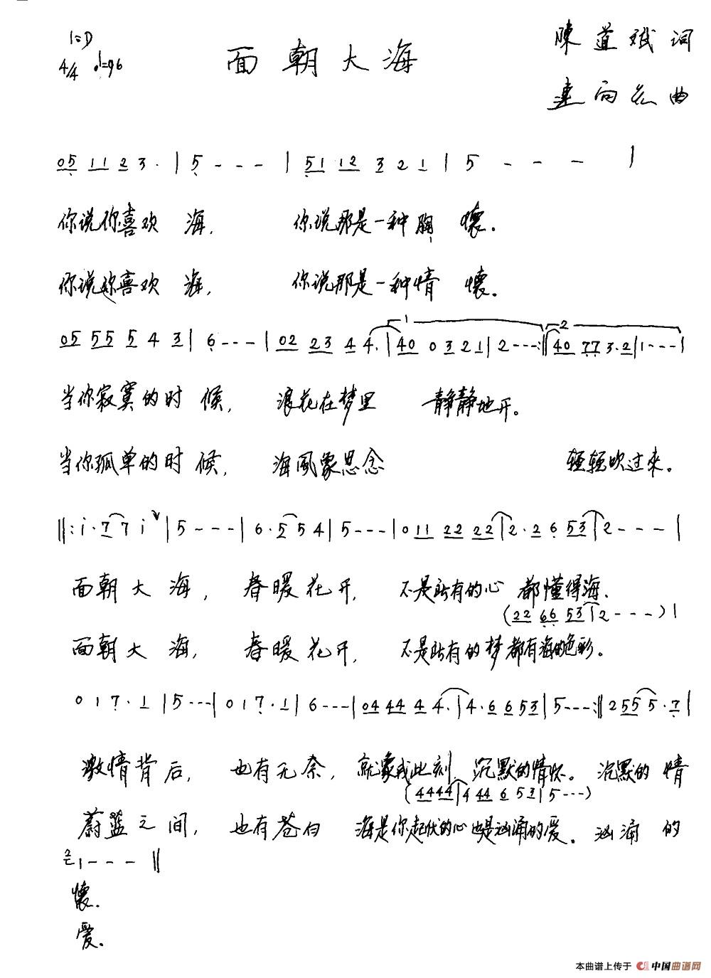 致谢:《中国曲谱网》衷心感谢作者老师馈赠原版歌谱!