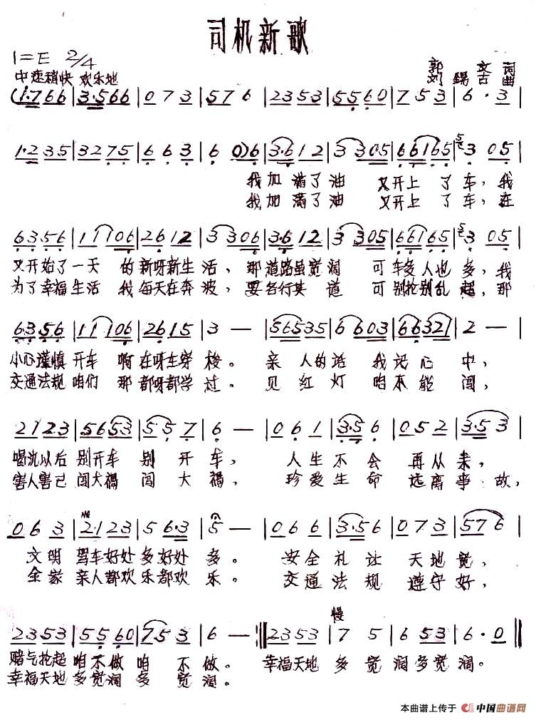 关于《司机新歌》曲谱的评论
