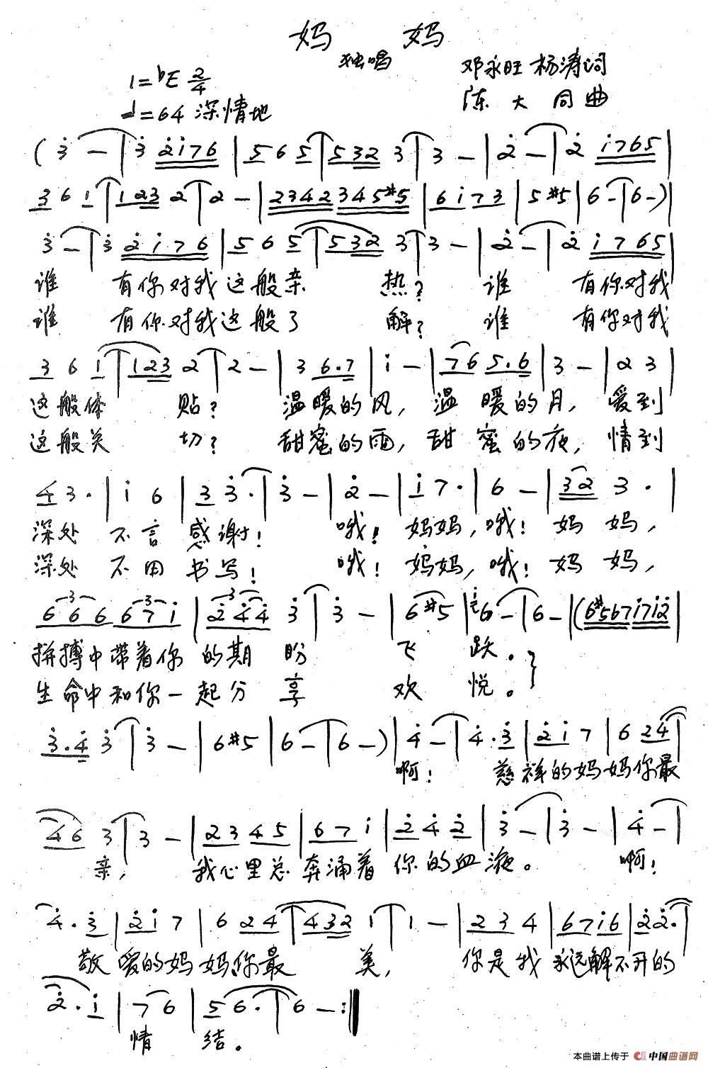 致谢:《中国曲谱网》衷心感谢作者老师馈赠原版歌谱!