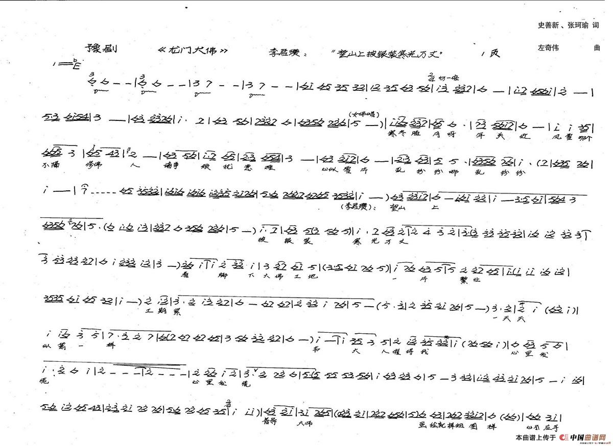 关于《李君瓒唱:望山上披银装寒光万丈》曲谱的评论