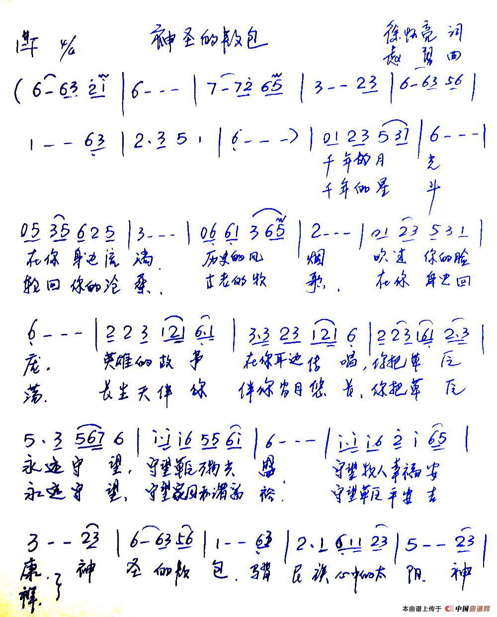 当前位置: 首页 谱友园地 手稿谱区 神圣的敖包(徐怀亮词 赵勇曲)