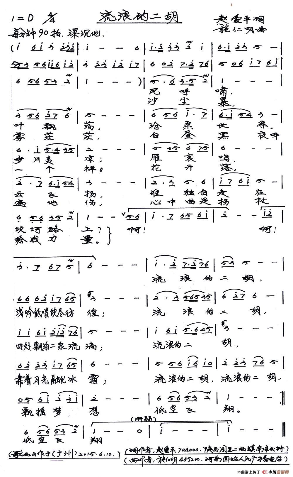 这首歌曲谱很好听,但是唱得有戏剧的味道,感觉没唱出突出主题流浪的二胡,个人见解请见谅。 [回复]