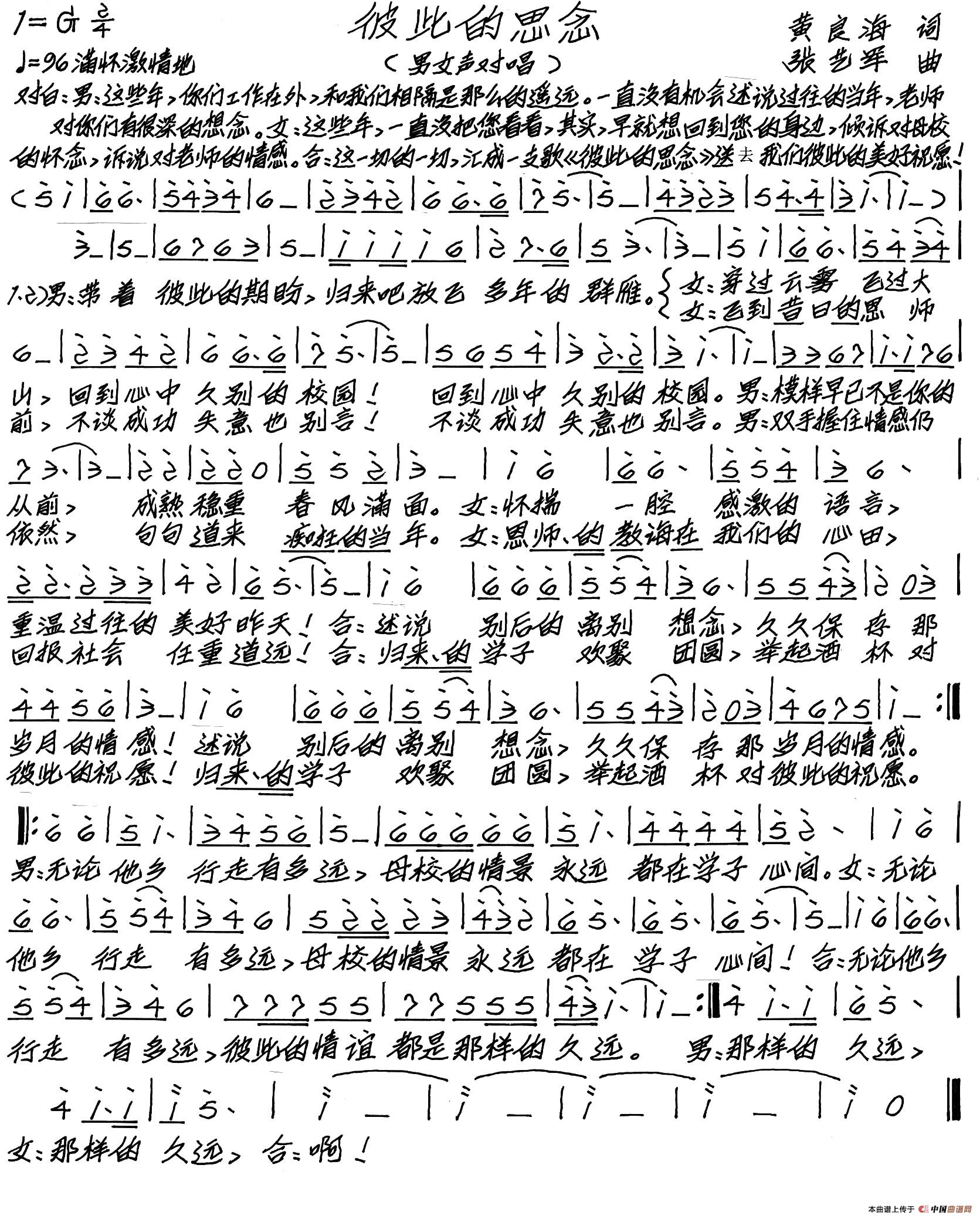 旁白:(男)这些年!你们工作在外,和我们相隔是那么的遥远,一直没有机会述说过往的当年,老师对你们有很深的想念!(女)这些年!一直没把你看看!其实!早就想再回到您的身边!倾述对母校的怀念!述说对老师的情感!(合)这一切的一切汇成一支歌《彼此的思念》!送去我们彼此的美好祝愿!