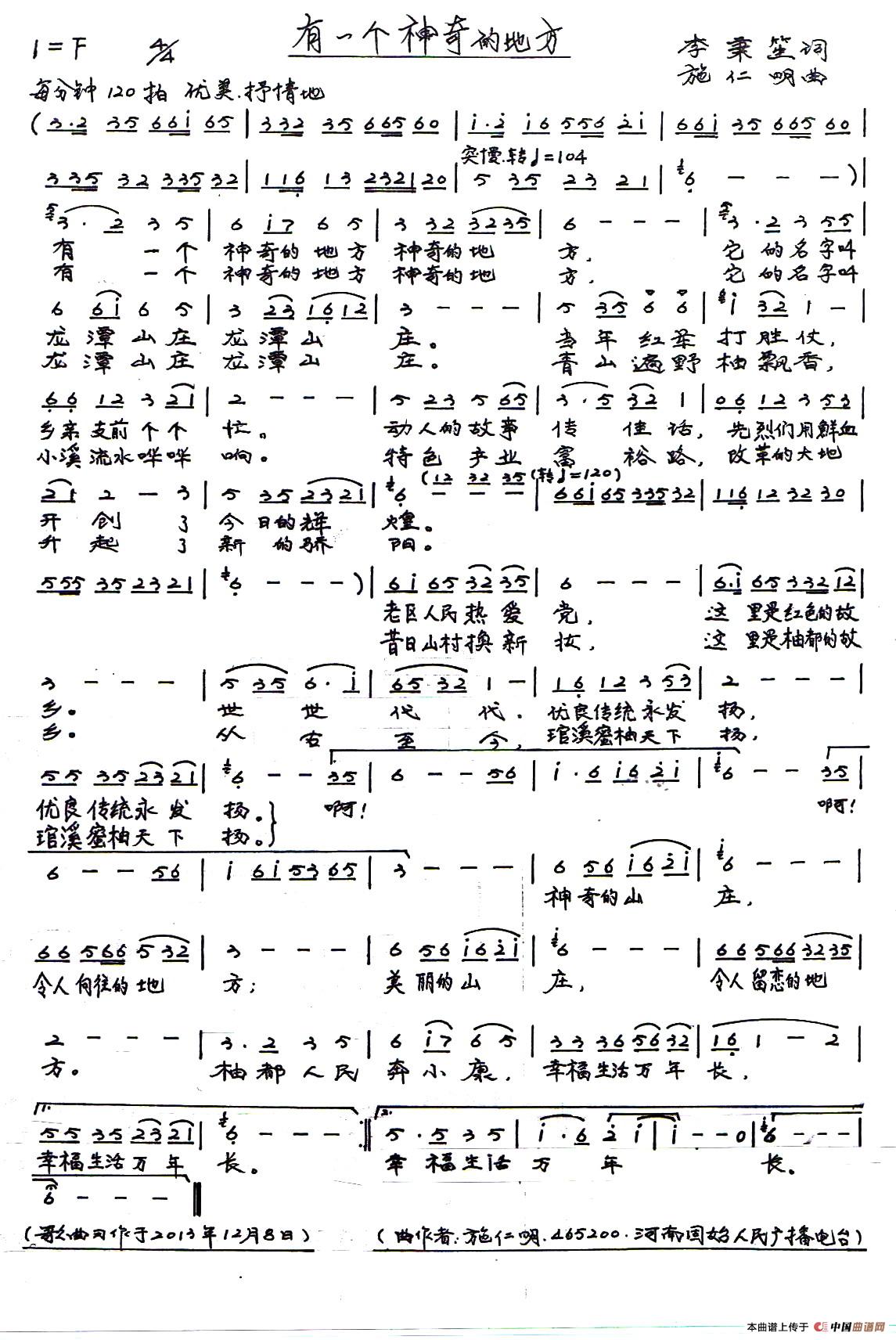 关于《有一个神奇的地方》曲谱的评论