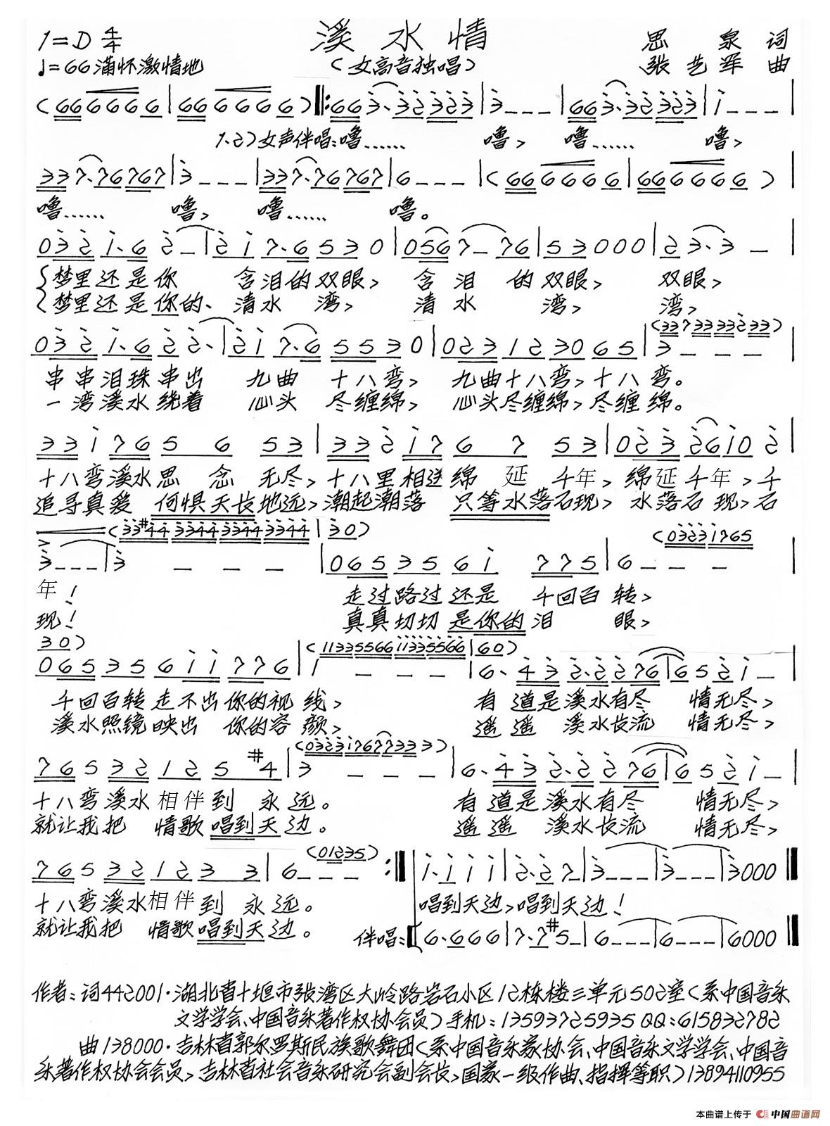 关于《溪水情》曲谱的评论