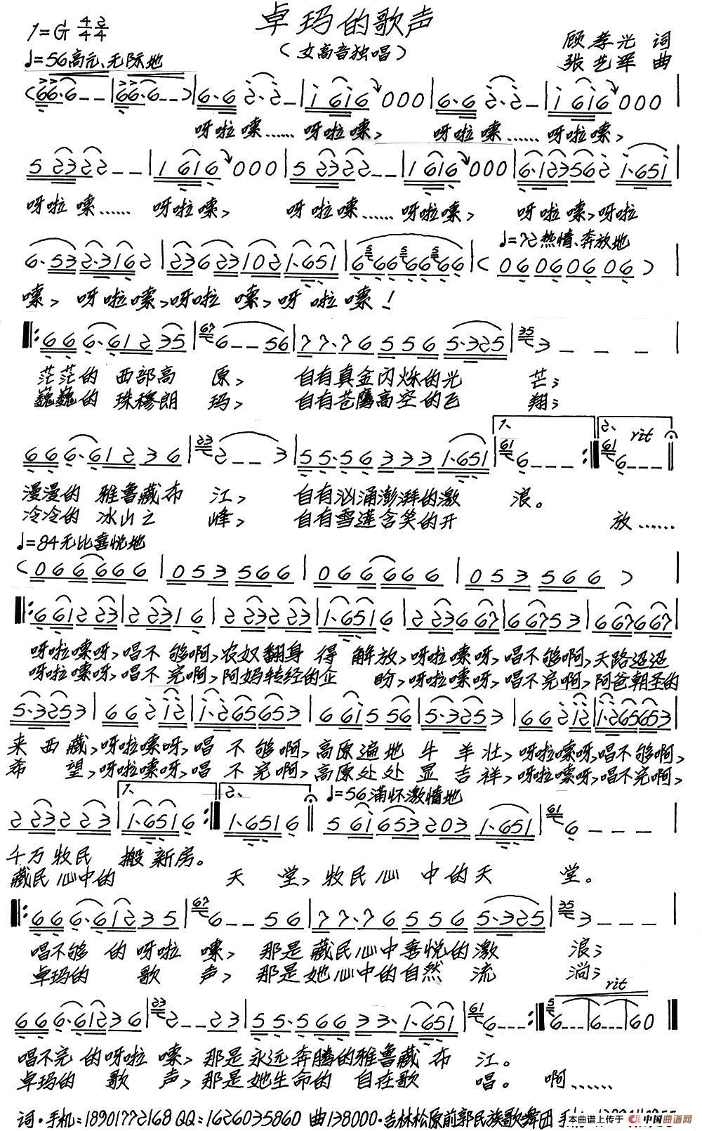 关于《卓玛的歌声》曲谱的评论