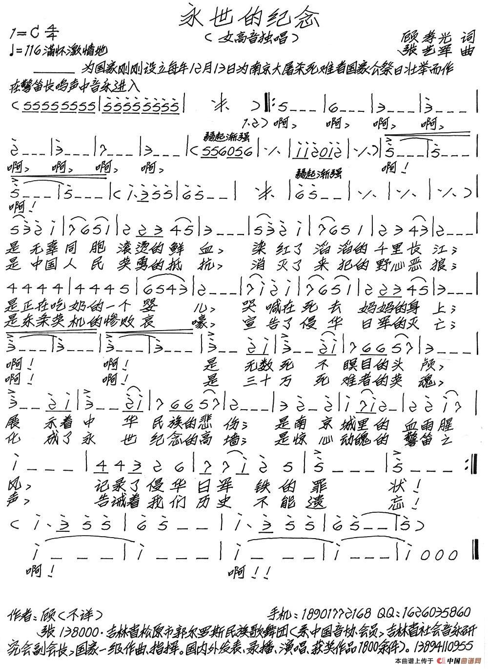 致谢:《中国曲谱网》衷心感谢作者老师馈赠原版歌谱!