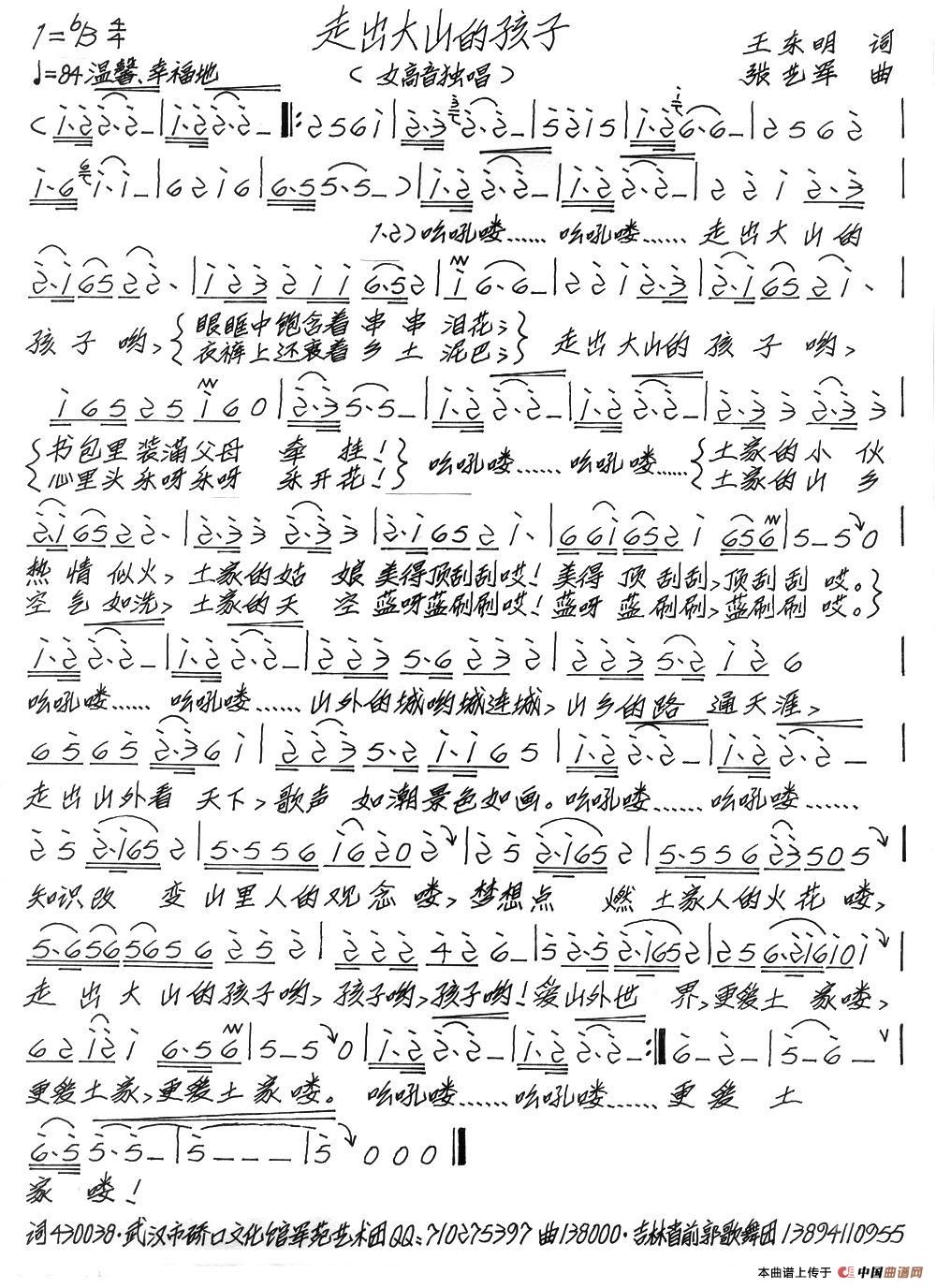 致谢:《中国曲谱网》衷心感谢作者老师馈赠原版歌谱!