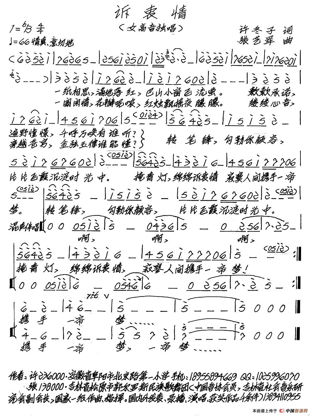 致谢:《中国曲谱网》衷心感谢作者老师馈赠原版歌谱!
