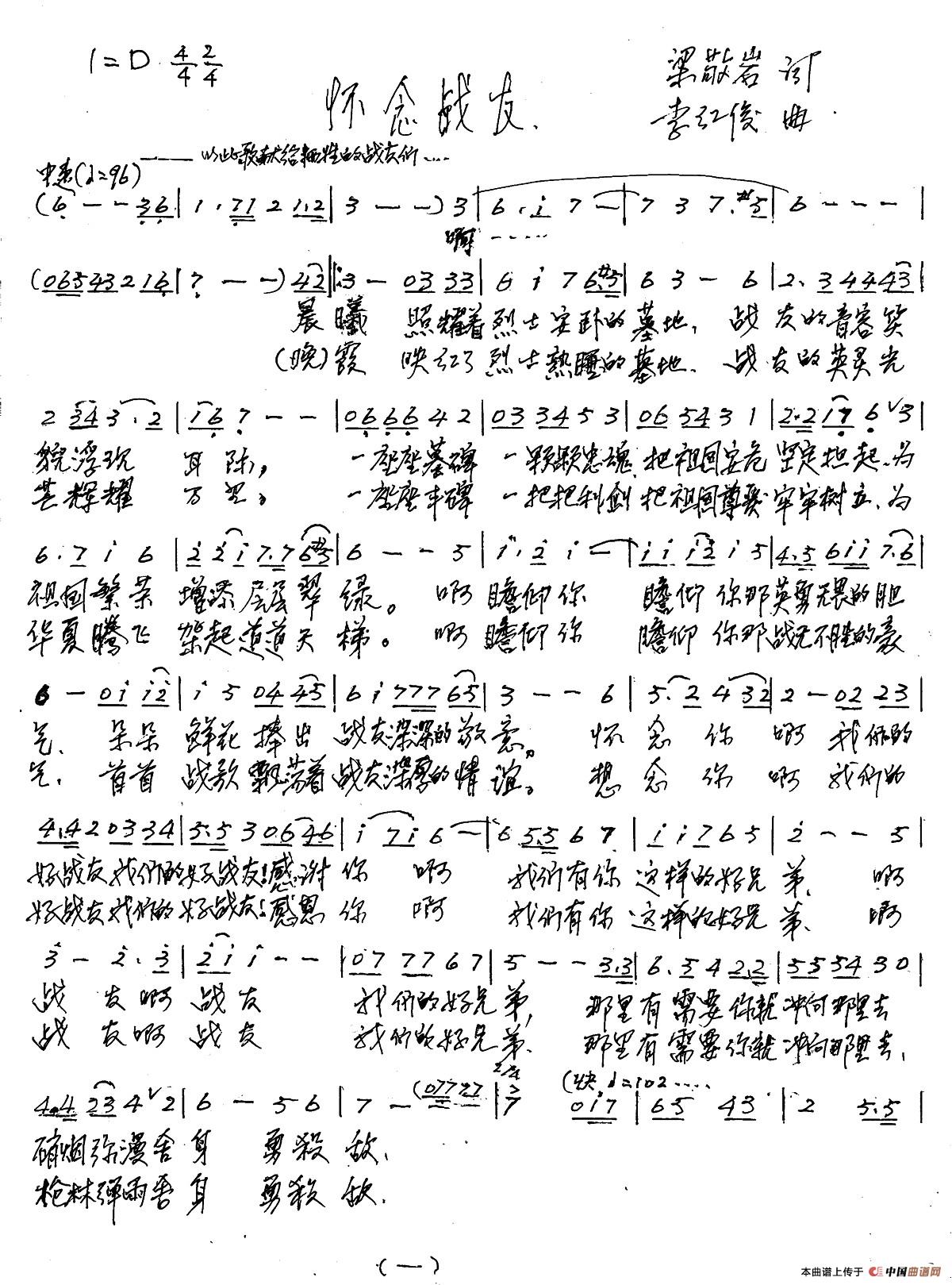《怀念战友》文本歌词