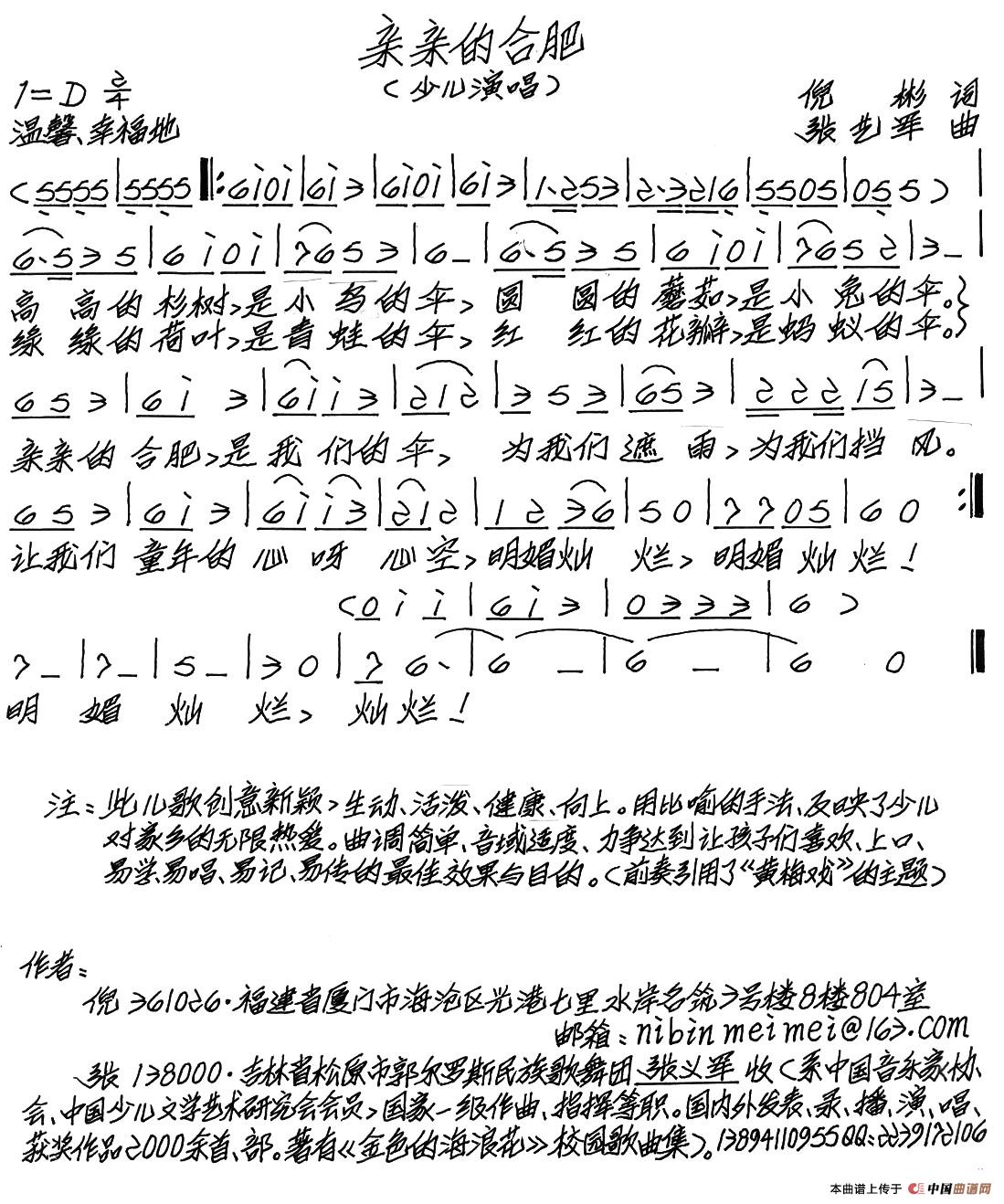 关于《亲亲的合肥》曲谱的评论