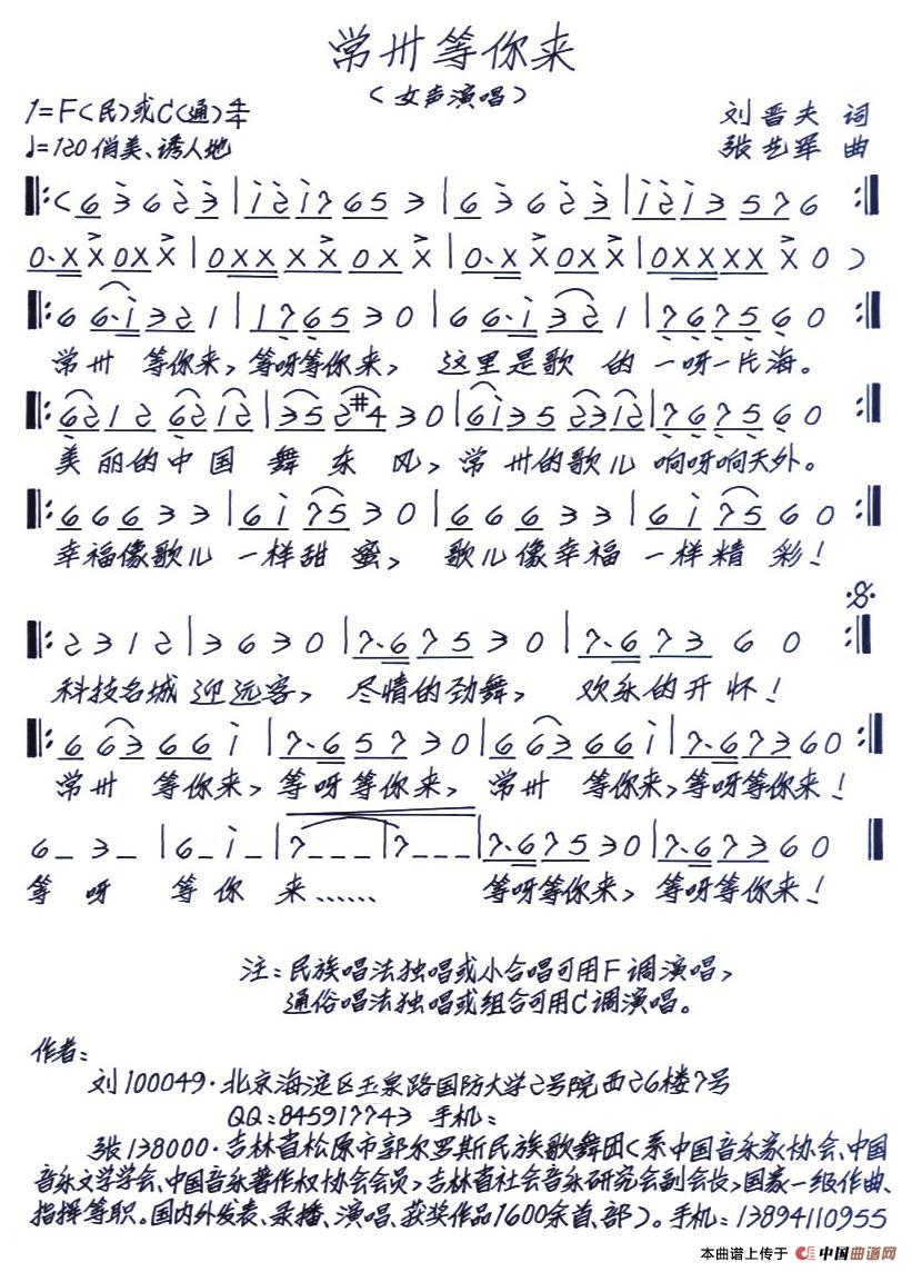 致谢:《中国曲谱网》衷心感谢作者老师馈赠原版歌谱!