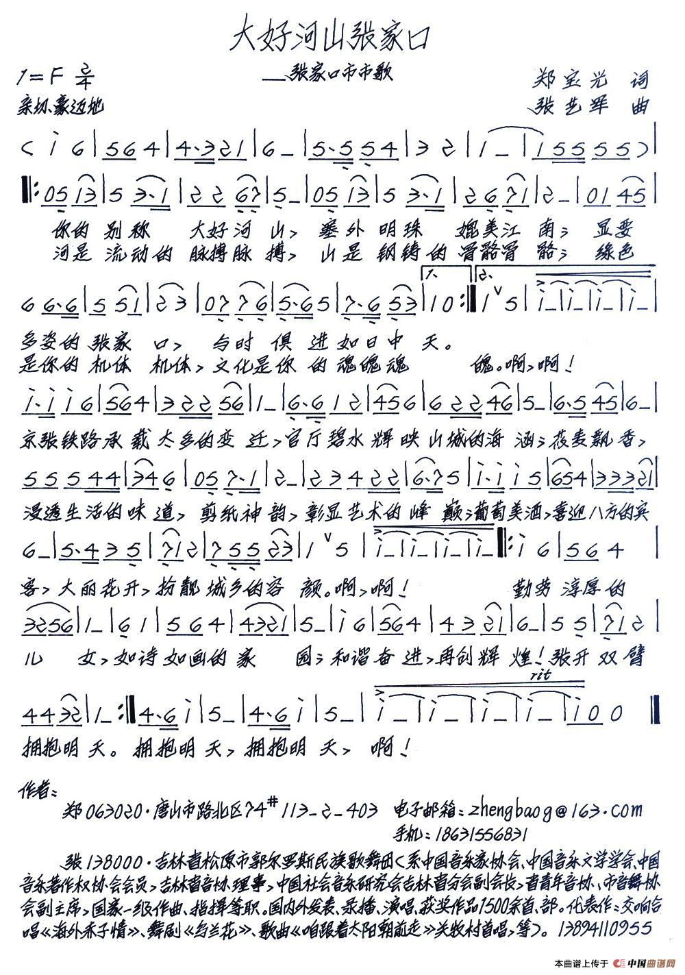 致谢:《中国曲谱网》衷心感谢作者老师馈赠原版歌谱!